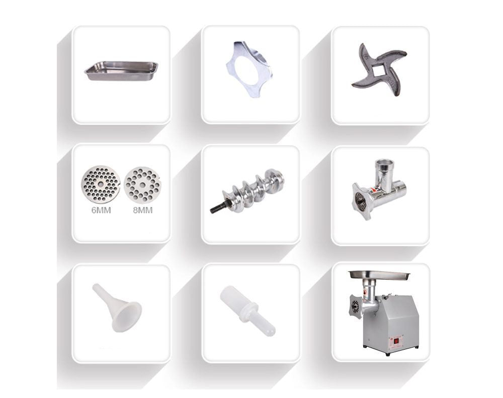 We are offering two Mincing Plates and one Sausage Making Attachment with this meat mincer grinder.