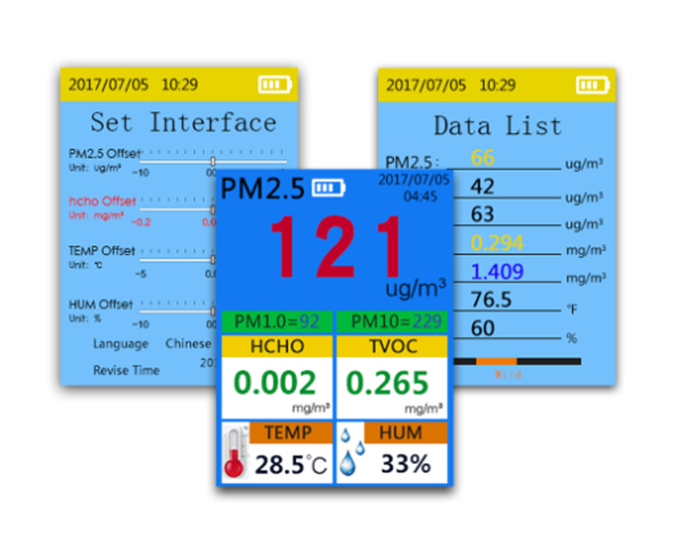 - Can Detect HCHO, TVOC, PM 2.5, PM 10, PM 1.0, TEMP, Humidity, AQI