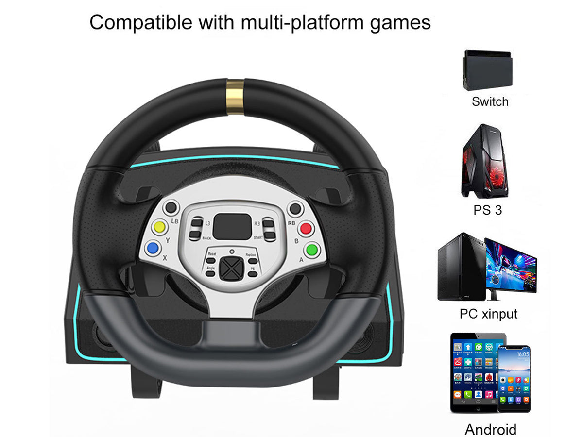 This Game Steering Wheel is perfect for racing games and compatible with PC, Xbox ONE, Xbox Series X/S, Xbox 360, PS4, PS3, Nintendo Switch, Android, and X input systems.