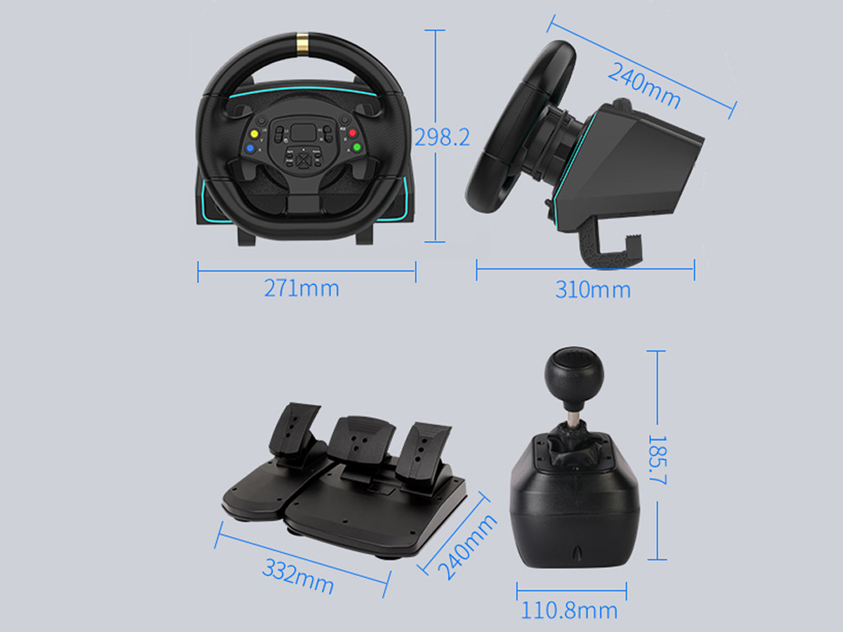 The Racing Steering Wheel has ergonomically designed pedals with progressive braking resistance, adjustable tilt angle, and cool lighting settings that enhance the visual experience while playing and bring a different visual experience. The Racing Steering Wheel can be installed or removed by easily aligning and rotating the main body to open the gaming experience anytime, anywhere.