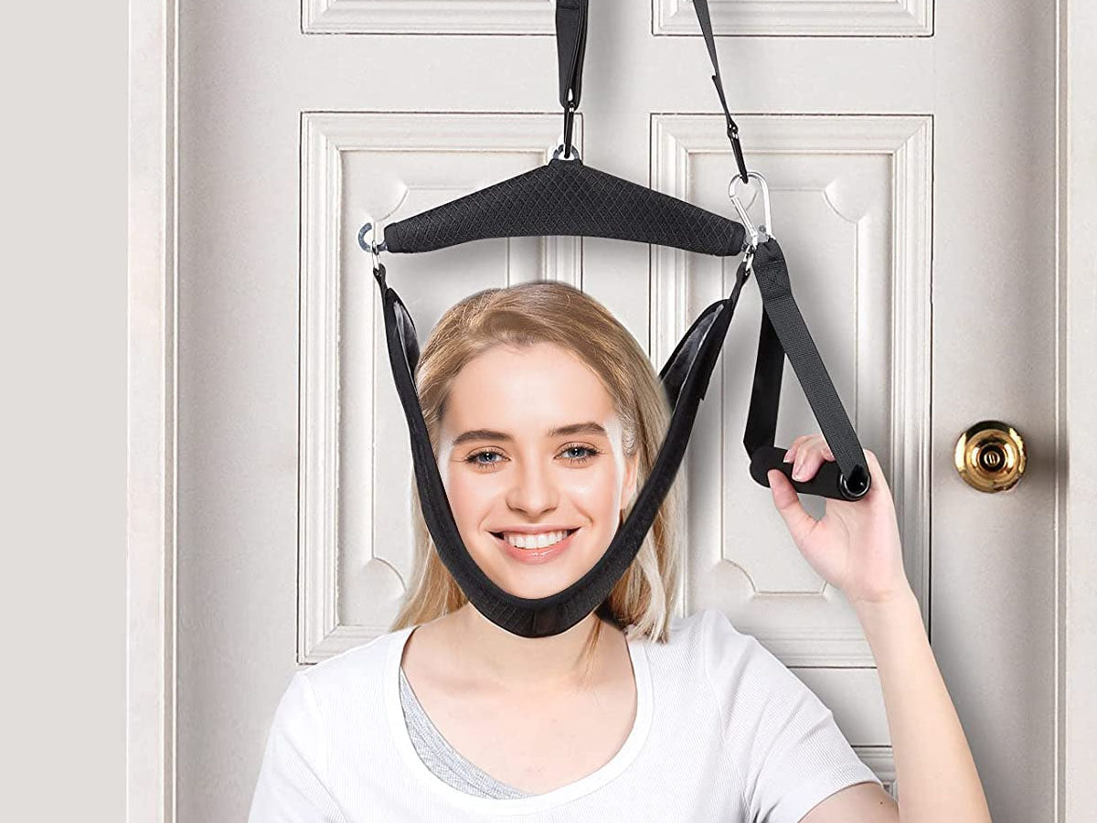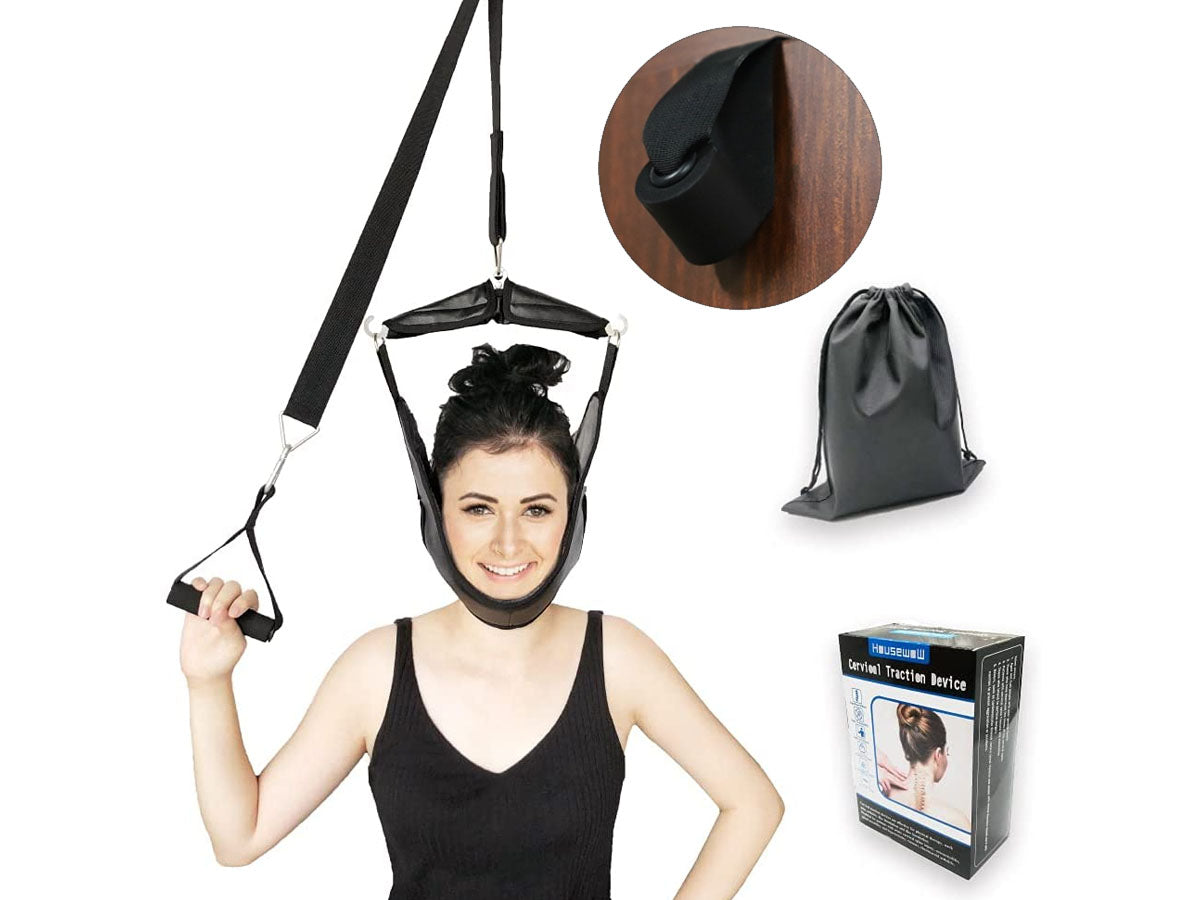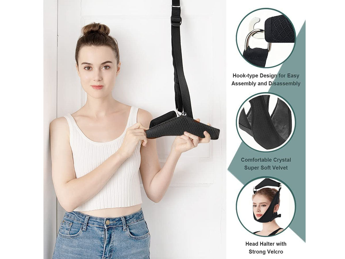 This ergonomically designed cervical neck traction device provides affordable and easy to use in the comfort of your home. This portable Hanging Neck Traction Device gently stretches the neck to help relax the muscles, and relieve pressure on the cervical muscles, and nerve tissues.