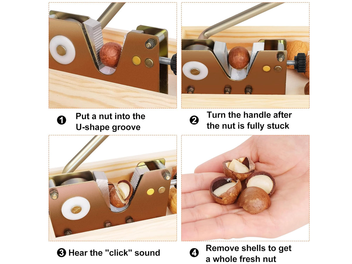 - Effortlessly cracks walnuts, hazelnuts, Brazil nuts, almonds, and pecans