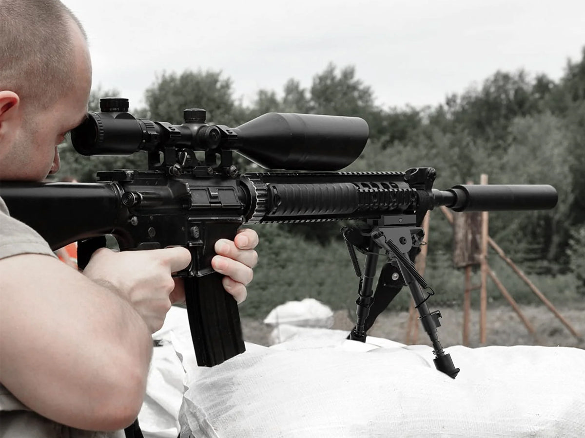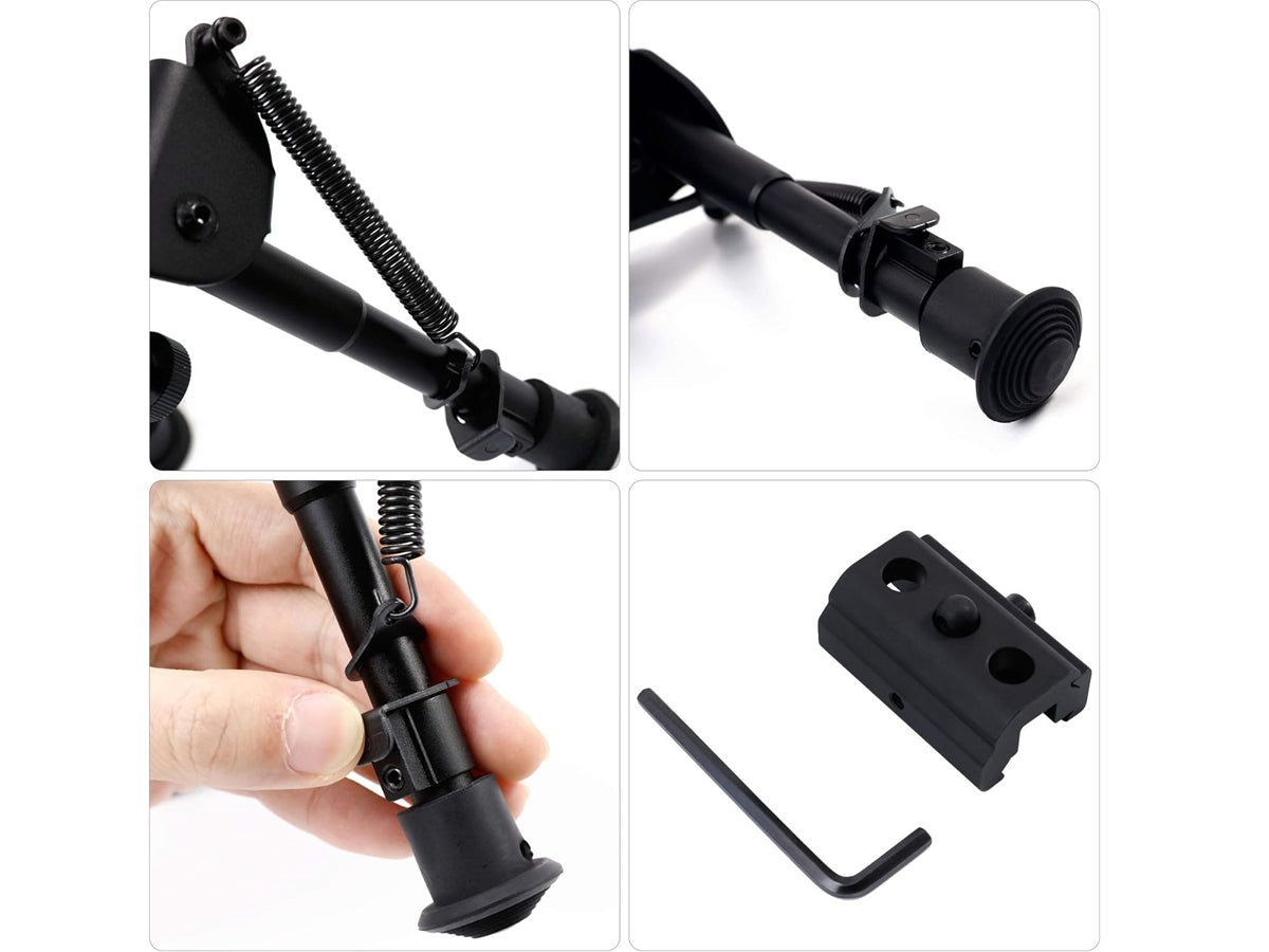 Elevate your shooting experience with our premium Adjustable Rifle Bipod 6-9 Inch. Crafted from ABS Plastic and Alloy Steel, this Rifle Bipod 6-9 Inch offers exceptional durability and resistance to wear, corrosion, and rust. With adjustable leg length, rubberized legs for stability, and a pivoting swivel adapter, it enhances maneuverability and shooting precision. Lightweight and easy to attach, it's the perfect accessory for hunting, target shooting, and tactical operations, providing reliable performance and precise aiming every time.