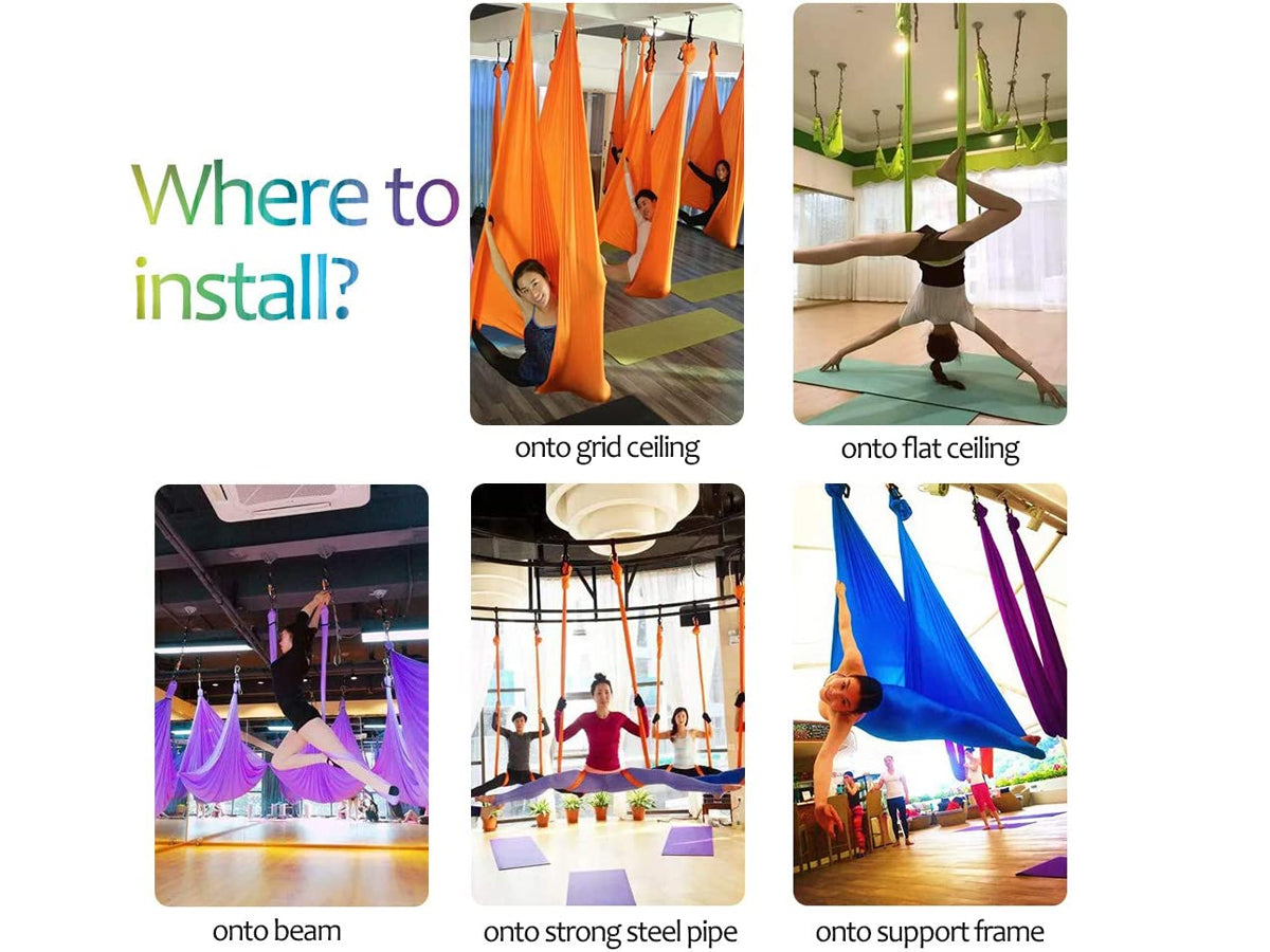 Introducing the 4-in-1 Aerial Yoga Swing Hammock Set, the perfect way to enhance your yoga practice and take it to new heights. This Aerial Yoga Swing Hammock set is soft, and comfortable, and has a loading capacity of 1980 lbs (900kg). It offers a range of health benefits such as relieving pain, improving balance, increasing strength, and elevating your mood.