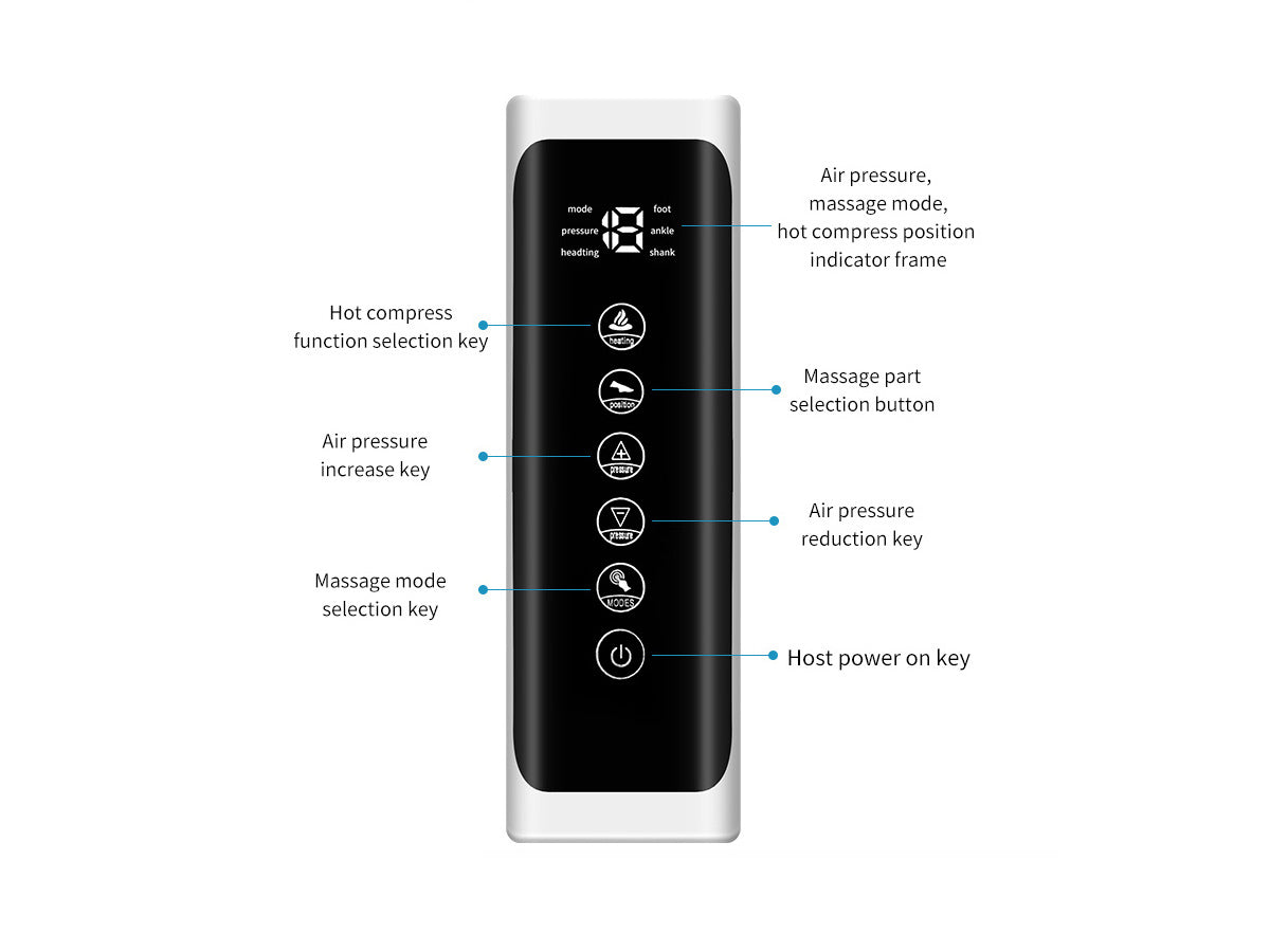 - Massage part selection button for Selecting specific leg areas for targeted massage therapy
