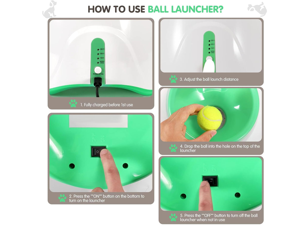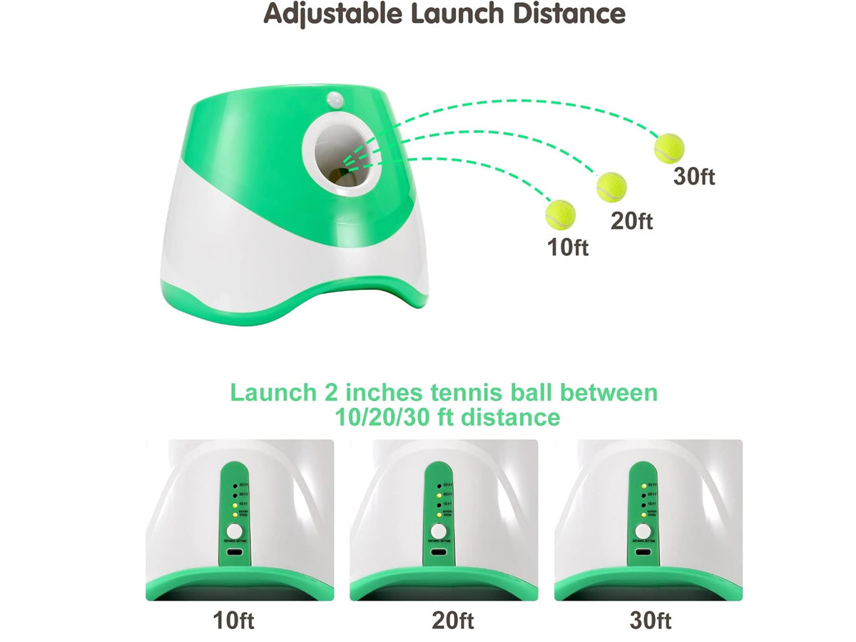 Introducing the Rechargeable Dog Ball Launcher! With adjustable distances, durable construction, and safety features like infrared sensors, it keeps pets entertained indoors or outdoors. Portable and rechargeable, 3 adjustable launch distances 10ft, 20ft, and 30ft choose the appropriate distance according to the environment.