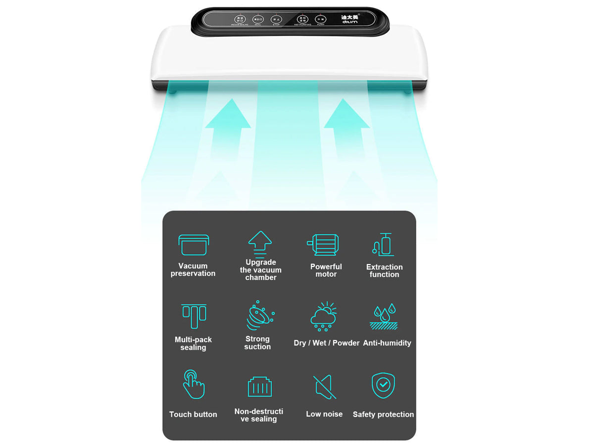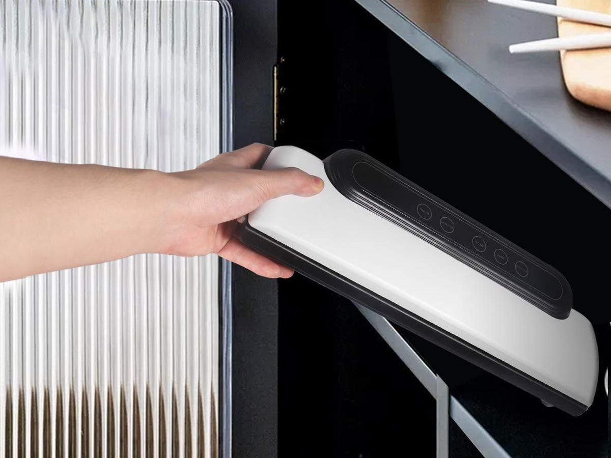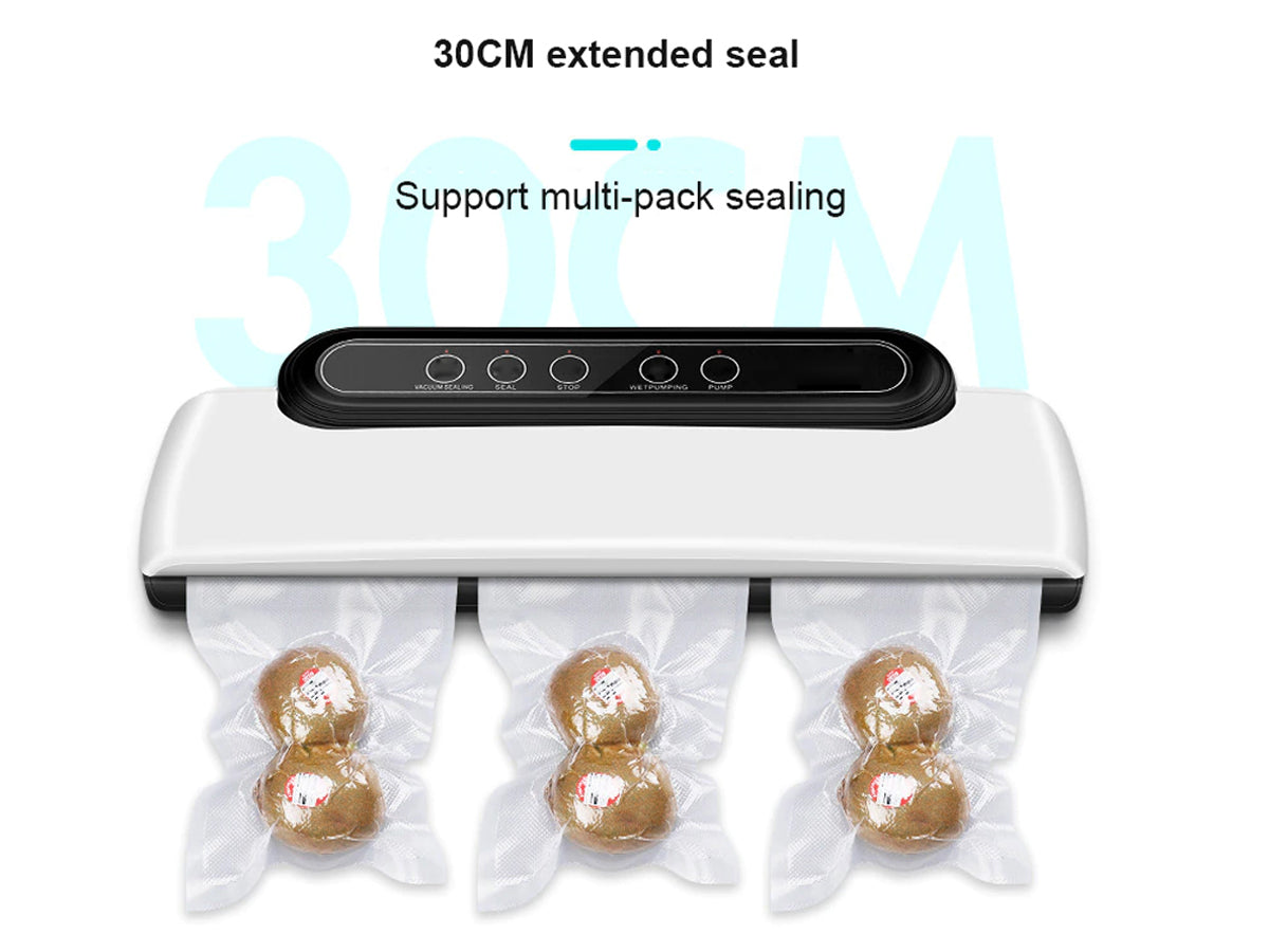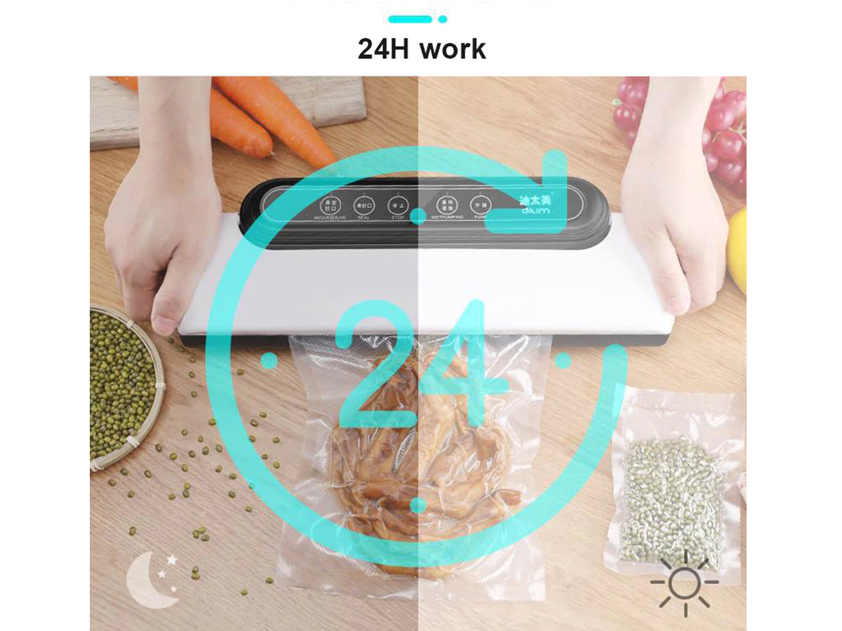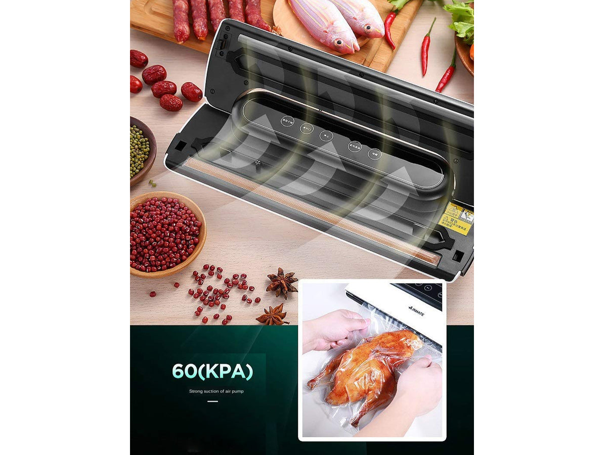 This Fully automatic Vacuum Sealer Machine simple electric plug-in design with the control center placed on the top panel and soft touch digital buttons along with led indicator lights. A smart device at your family’s service! It is very small and fairly lightweight. With its compact and sleek looks, it does not take up a lot of space in the kitchen;