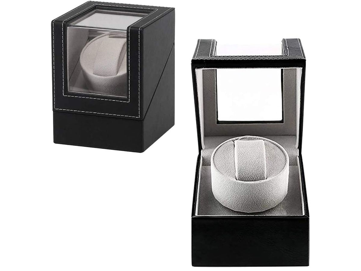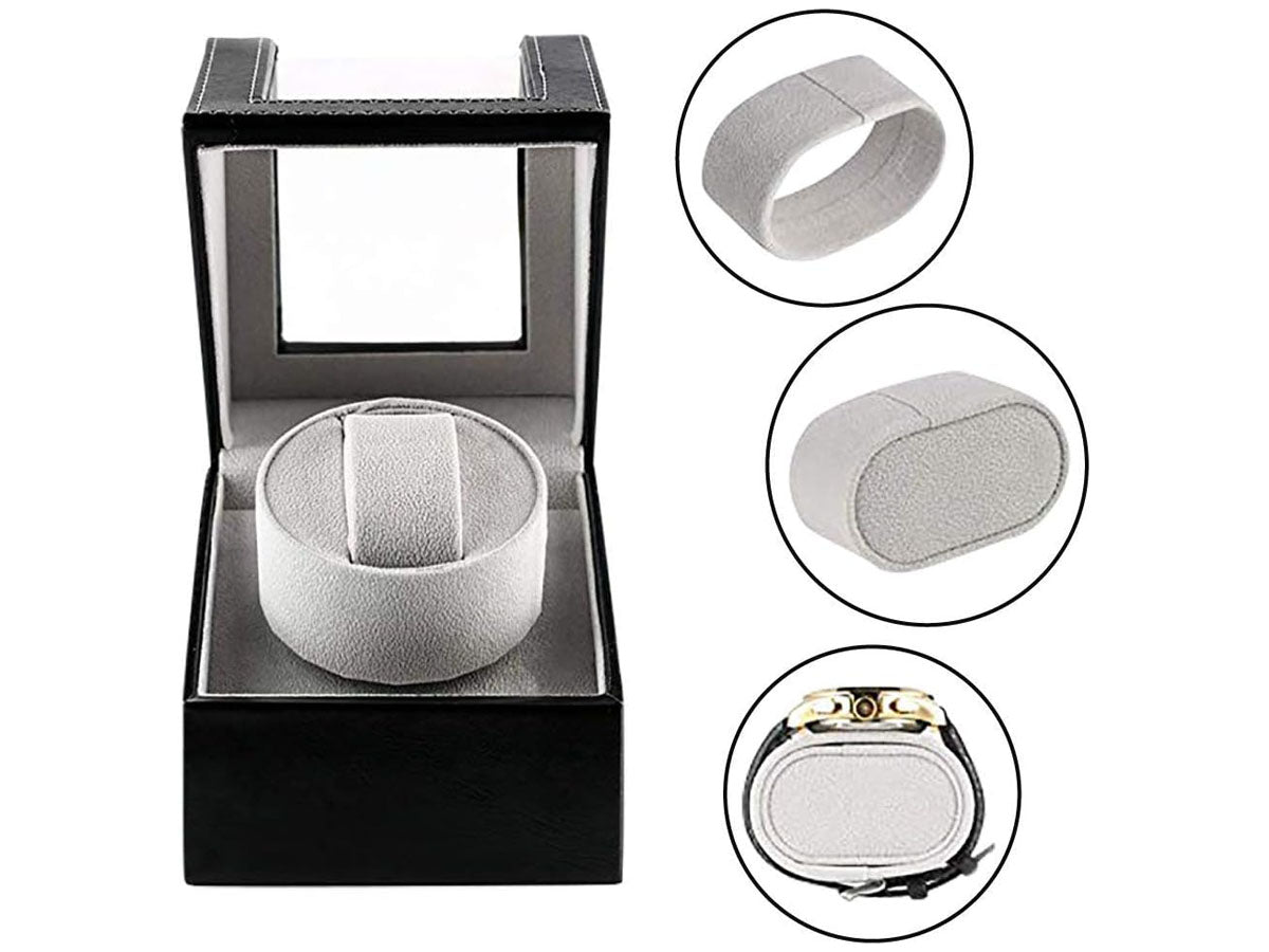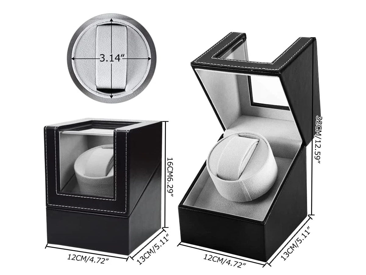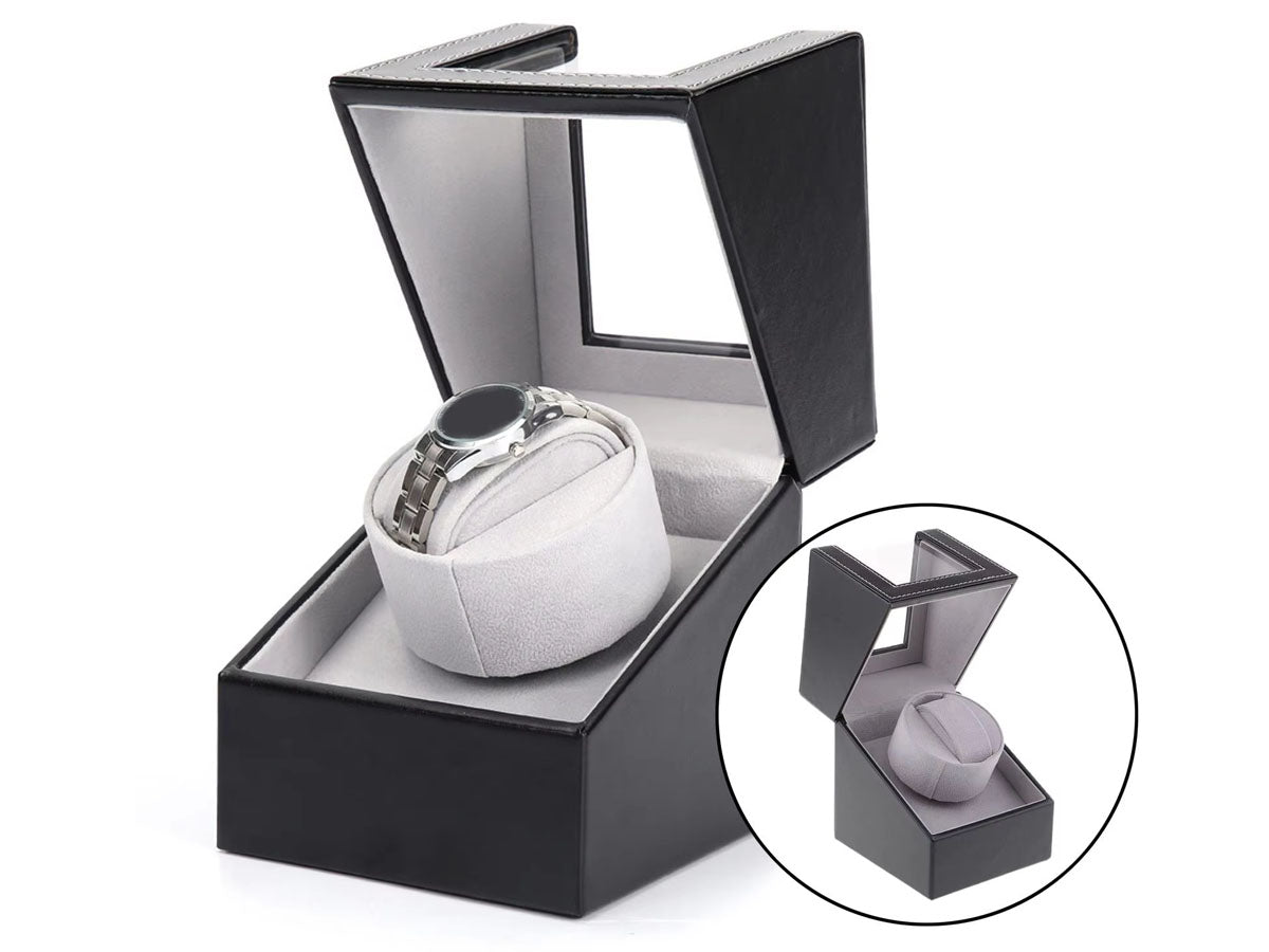 The Luxury Automatic Single Watch Winder Shaker keeps your watch ticking away by rotating the timepiece to simulate human motion. Once being powered up, this watch winder will rotate automatically; it can be powered with an AC plug or by 2 AA batteries. This Luxury Automatic Single Watch Winder Shaker has a very low level of noise which is fully negligible. You can place your watch in the bedroom without representing a distraction factor and fall asleep at ease at night.