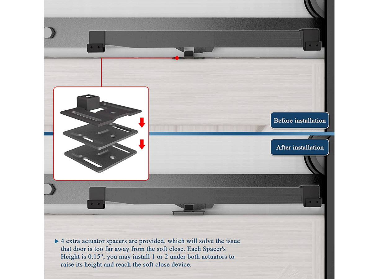 With our Barn Door Soft Close Mechanism, you can enjoy quiet and effortless door closing, while also ensuring that your doors are safe and secure. Installation is easy and straightforward, making it a convenient solution for any barn door user.