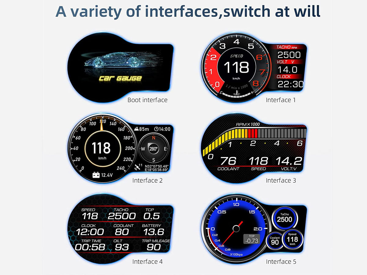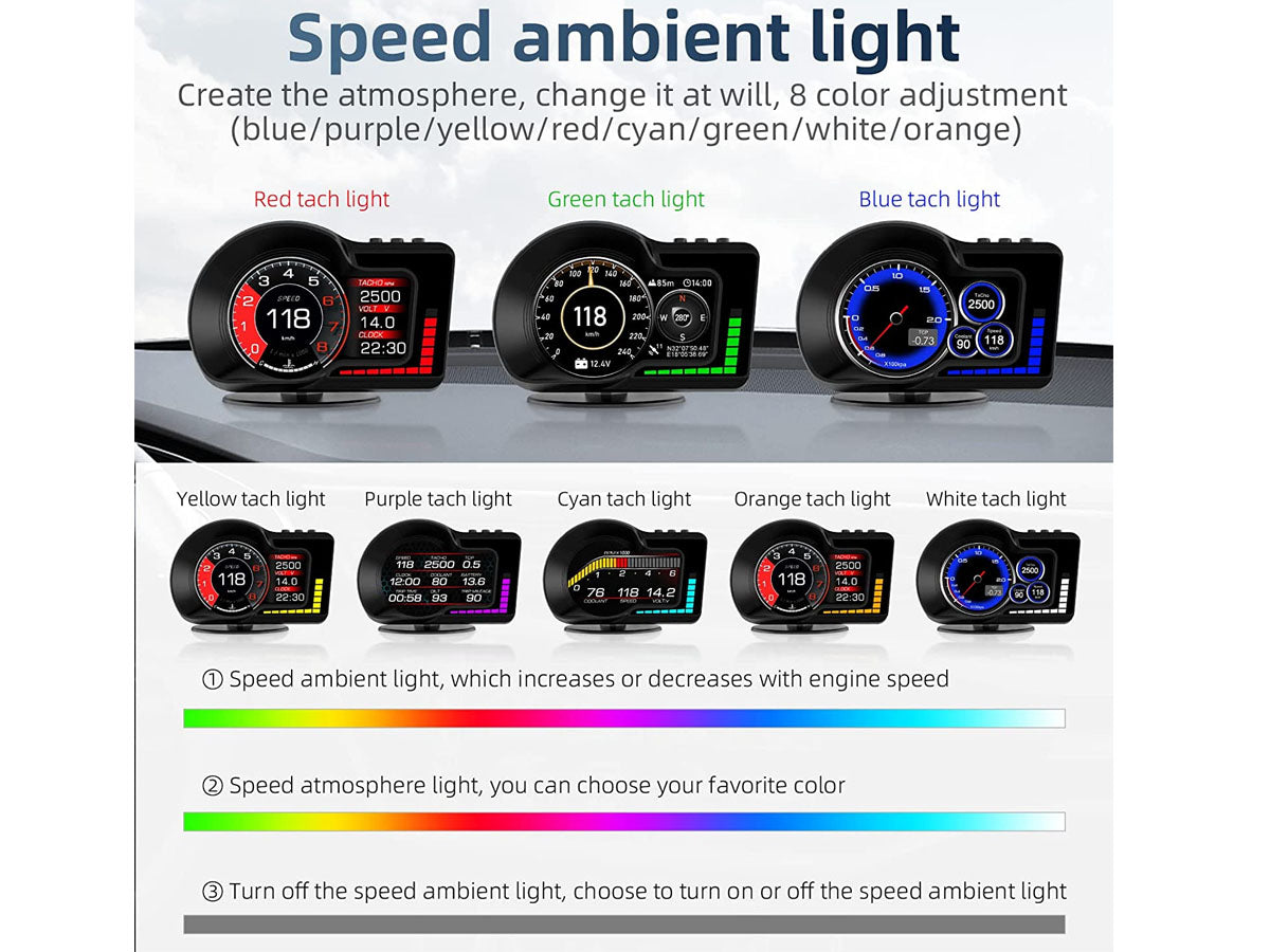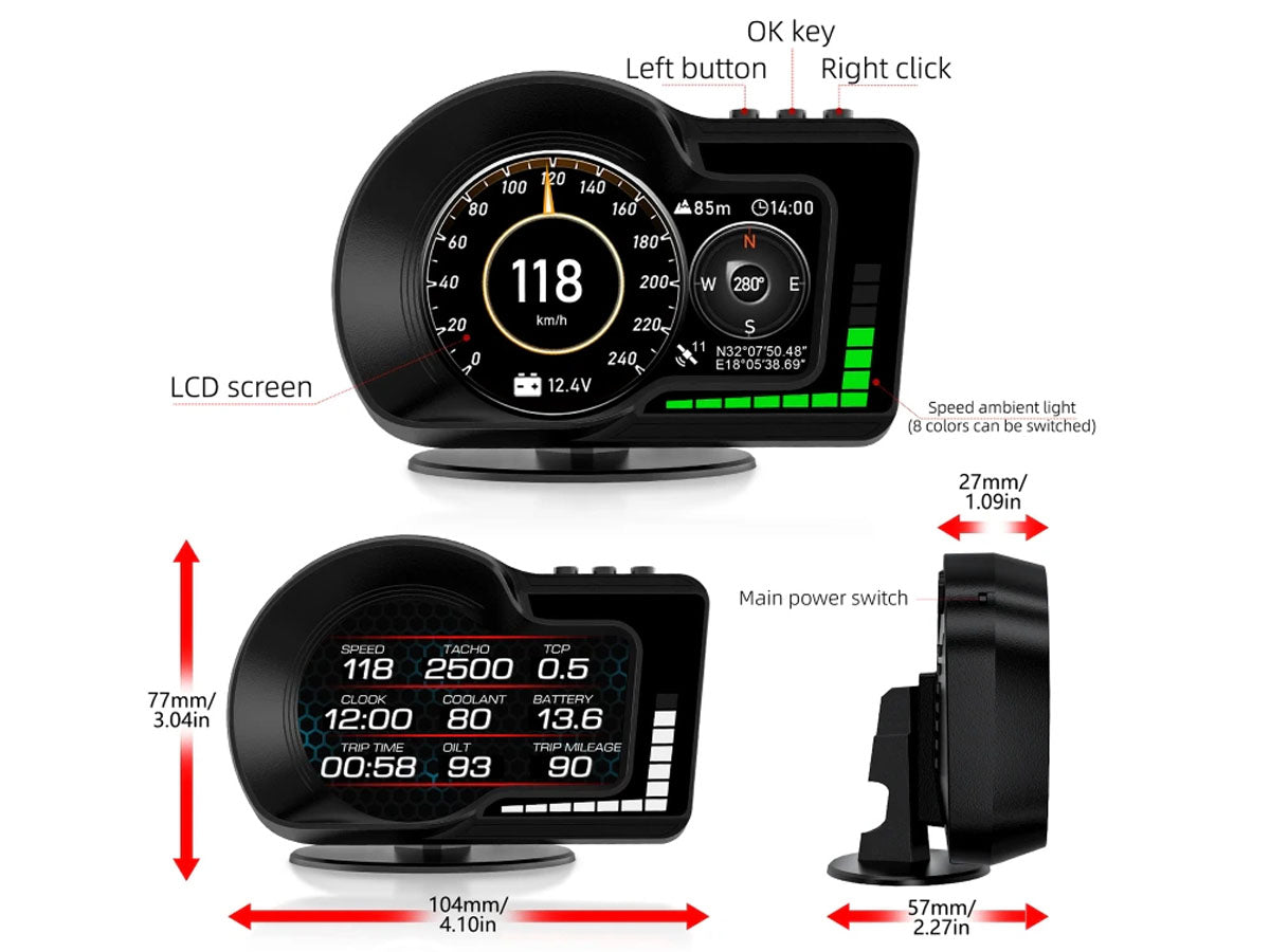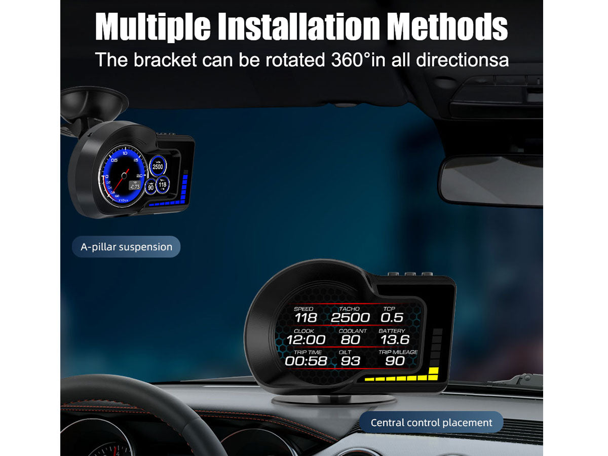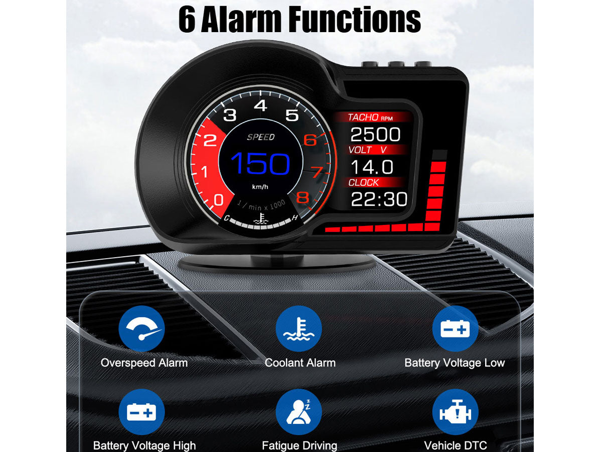 Upgrade your driving experience with our latest 2-in-1 OBD2 + GPS Speedometer. The multifunctional 3" car HUD heads-up display can read and clear fault information via OBD, detect over 10000+ fault codes and features built-in 6 alarms, 5 interfaces, and 8 colourful lights to enhance your driving experience.