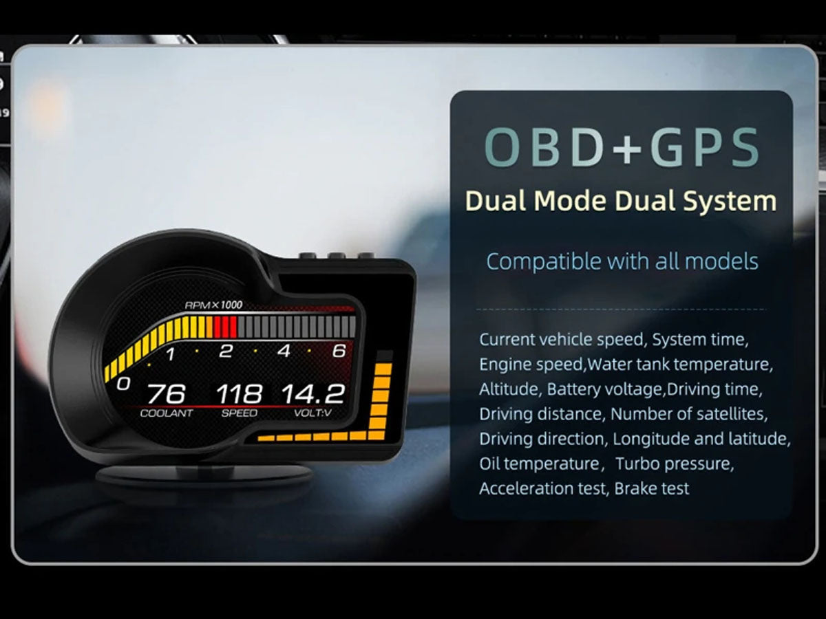This 2-in-1 OBD2 + GPS Speedometer is compatible with all OBD2-compliant models.