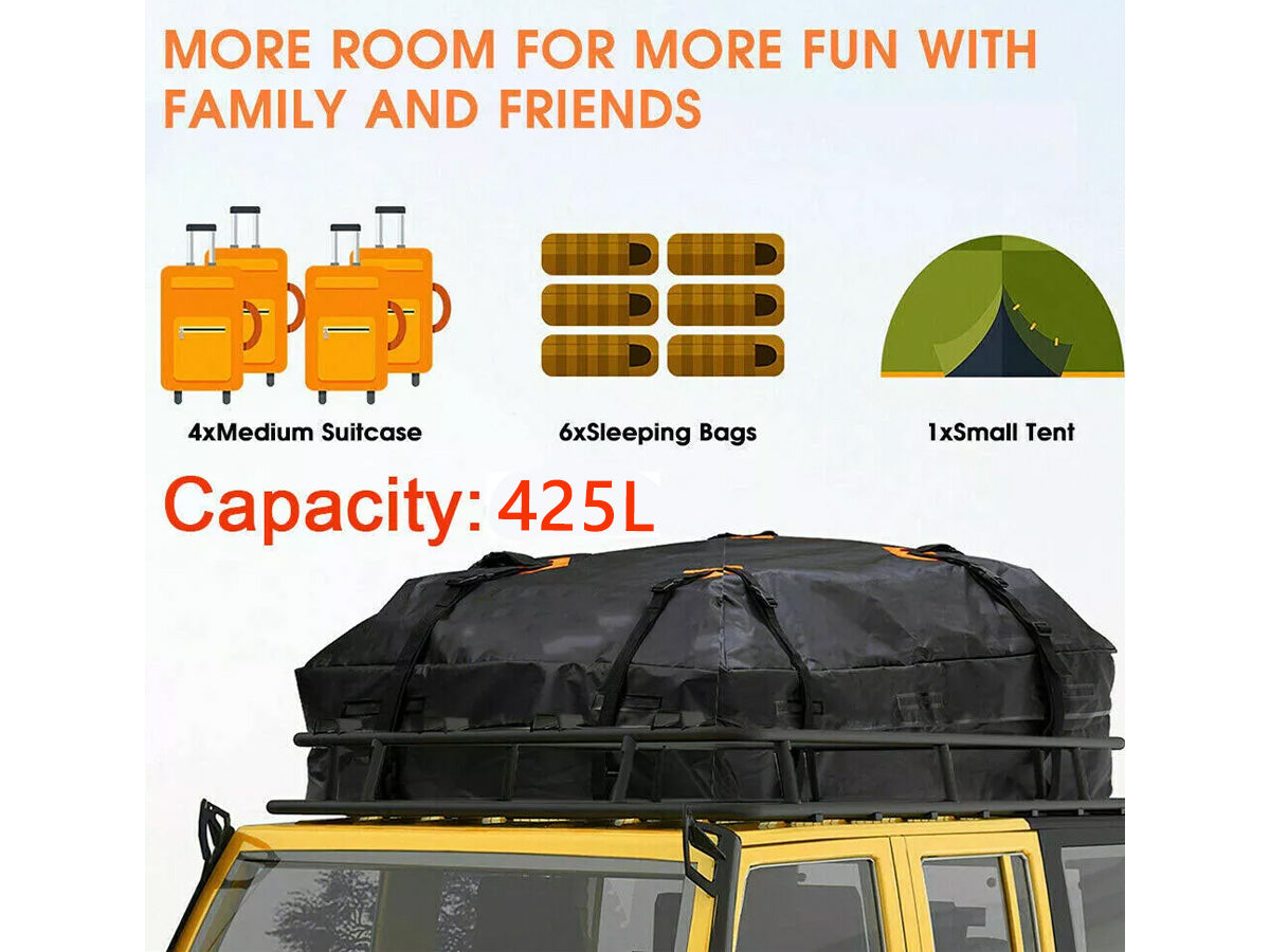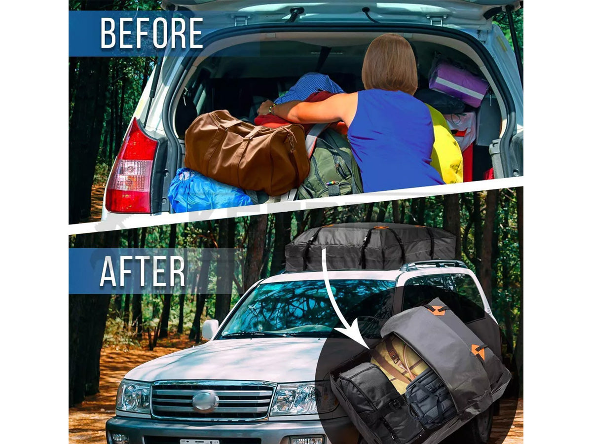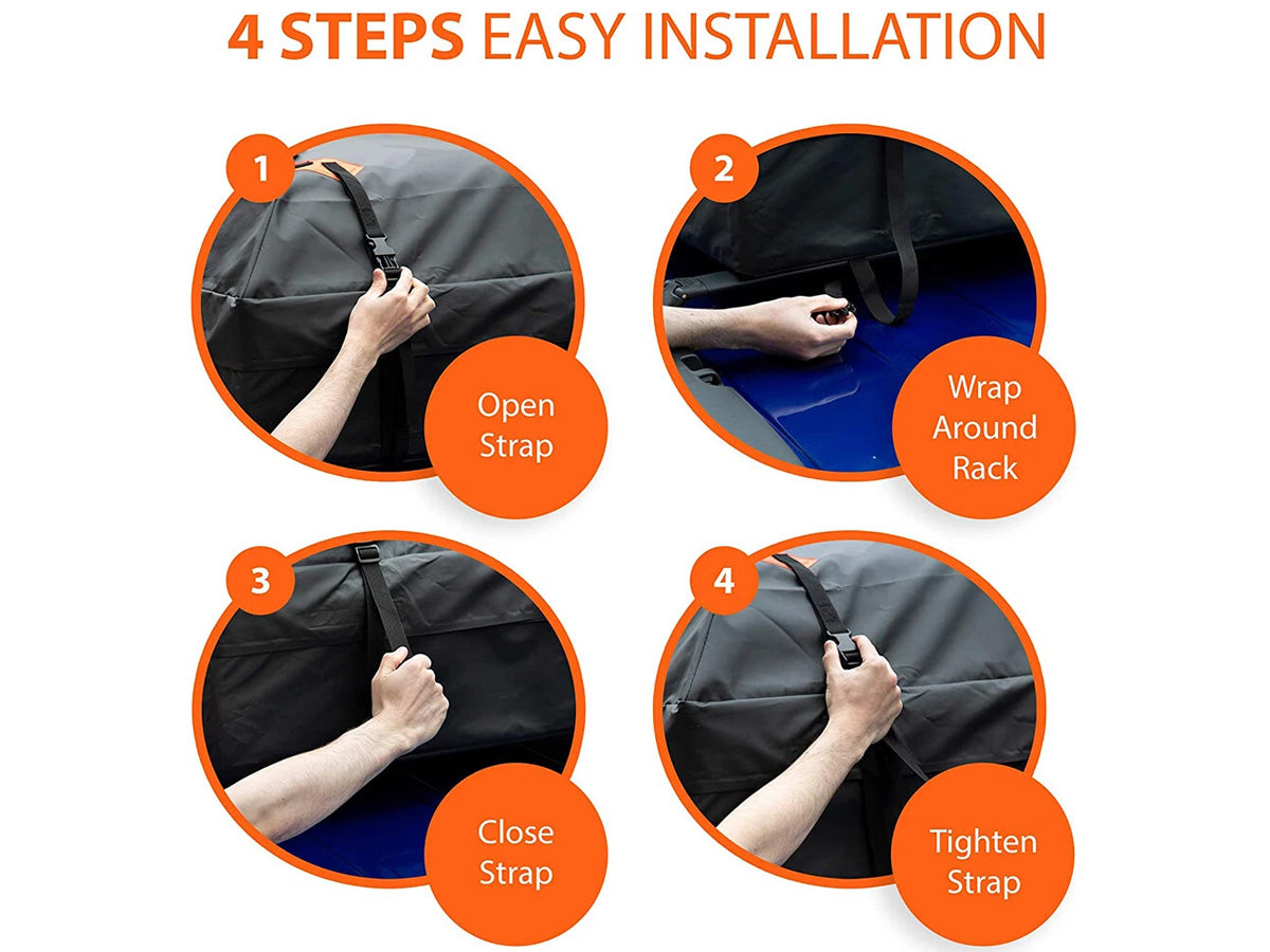 The Premium Quality Car Top Bag is made of military-grade materials with dual seam technology and water-repellent double coating. This rooftop cargo bag is 2- 3 times more durable than traditional ones. Regardless of whether your vehicle is equipped with a luggage rack or not, you can assemble it quickly and easily within a few minutes.