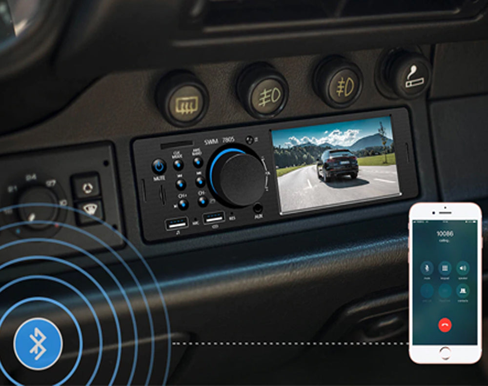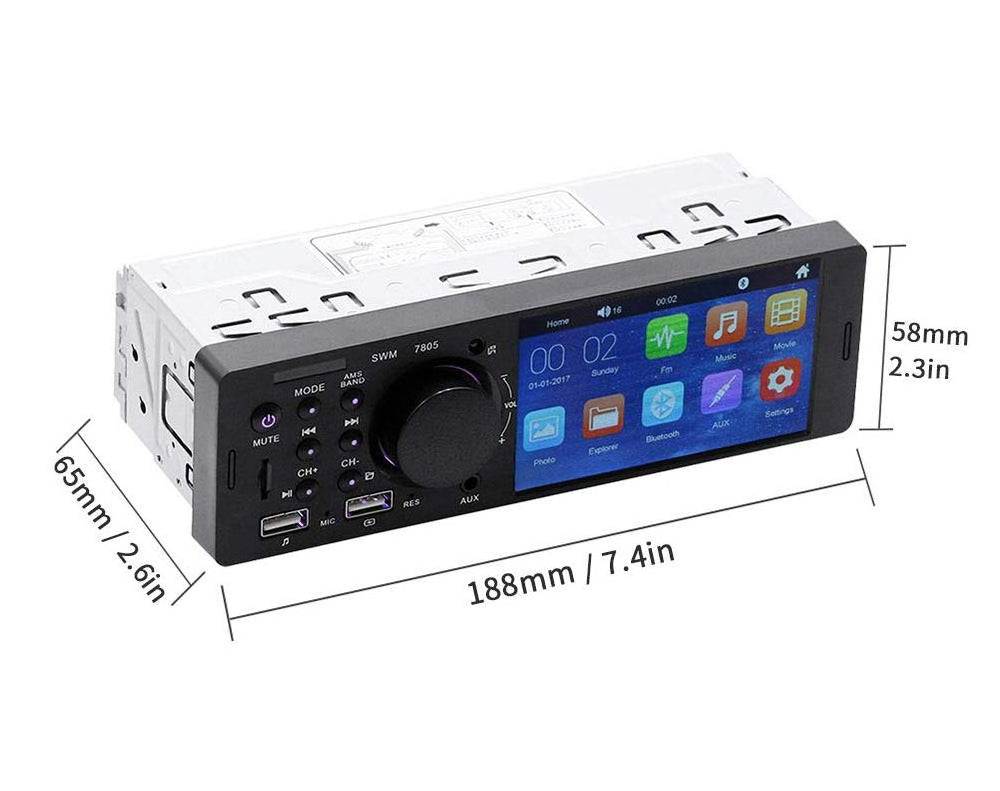 This Bluetooth 4.1 inch TFT touch screen car stereo MP5 player is equipped with FM radio presets for all of your favorite stations. If your road trip requires some of your own tunes, simply plug your device into the front auxiliary input to play your favorite music instantly or better yet, use your playback device's Bluetooth connection to play your music.