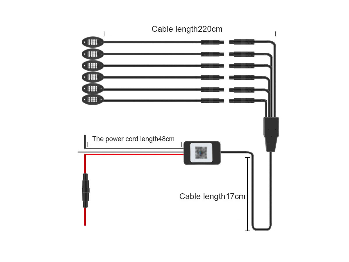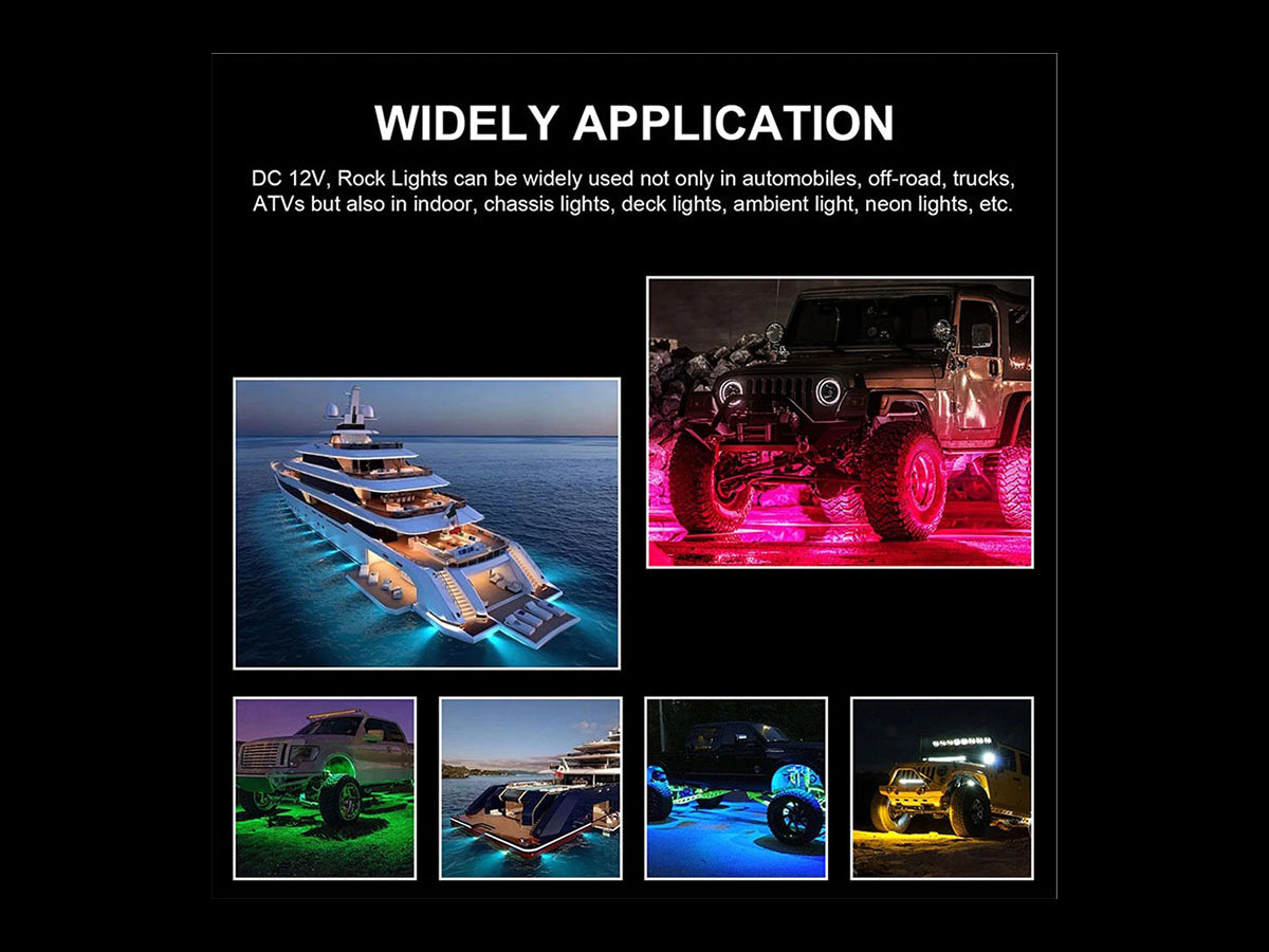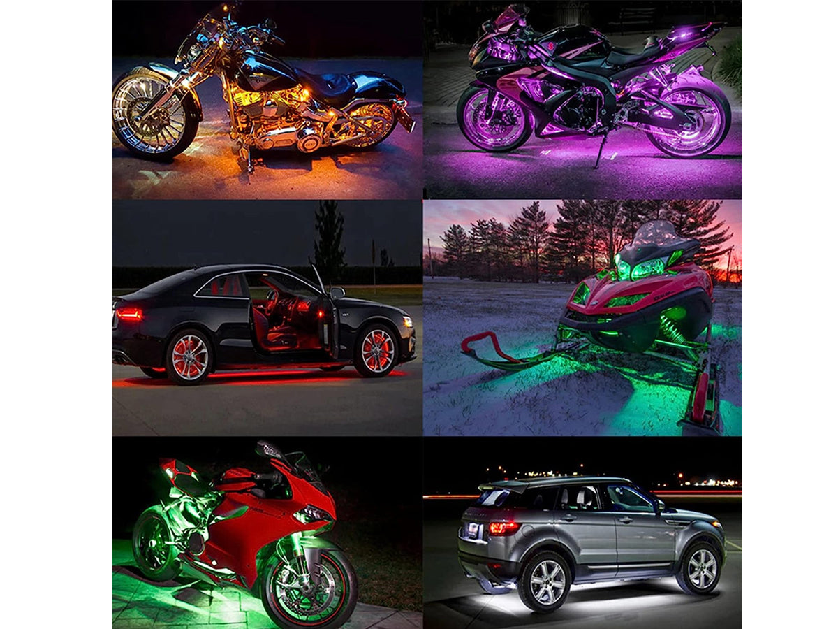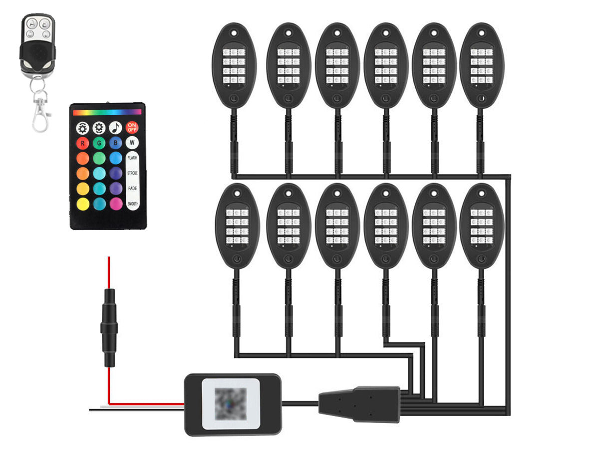 Upgrade your vehicle's aesthetics with the 12-Pod Car Chassis Light Set. This versatile lighting kit boasts multiple modes, adjustable settings, and stunning RGB multi-colour effects. With Bluetooth 5.0 connectivity and various control options, you can easily customize the speed, brightness, and visual patterns to create the perfect ambience. Experience the thrill of synchronized lighting that dances to your favourite music, or choose from other captivating modes to showcase your unique style.