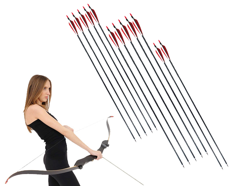 Carbon Archery Arrows 12-Pack - 31.5" Spine 500 for Recurve & Compound | 3" Vanes, Rotatable Nocks, High Performance Target Practice Arrows