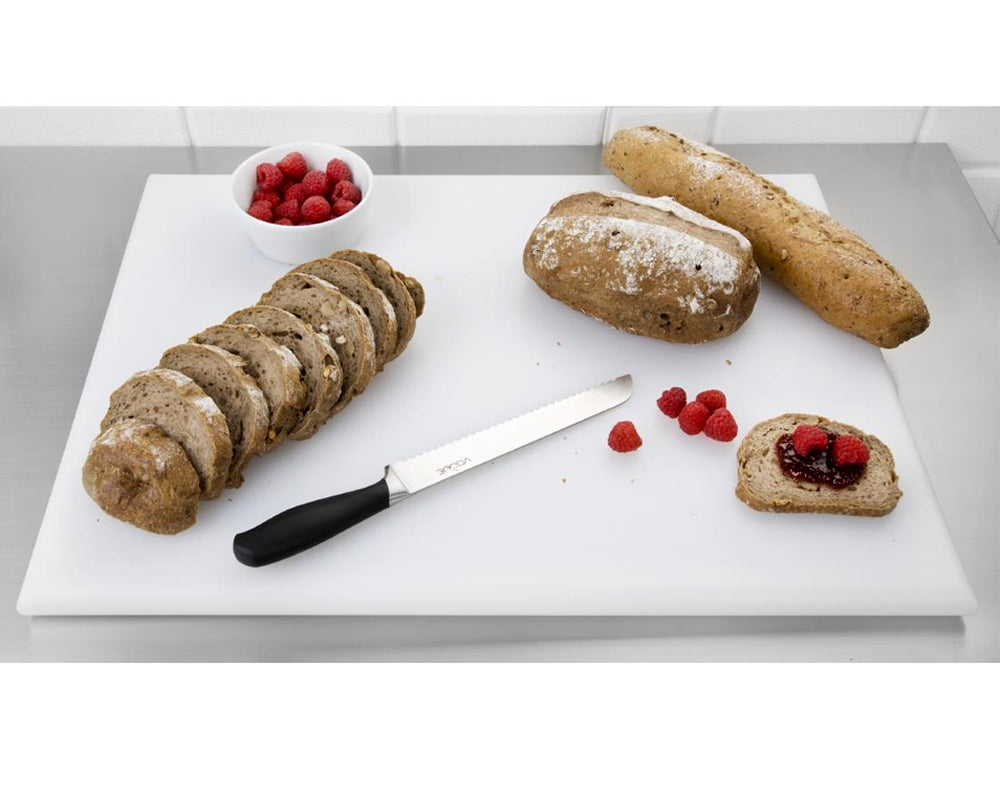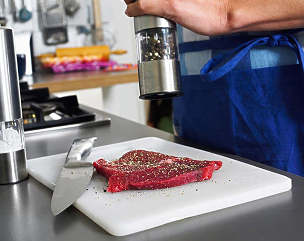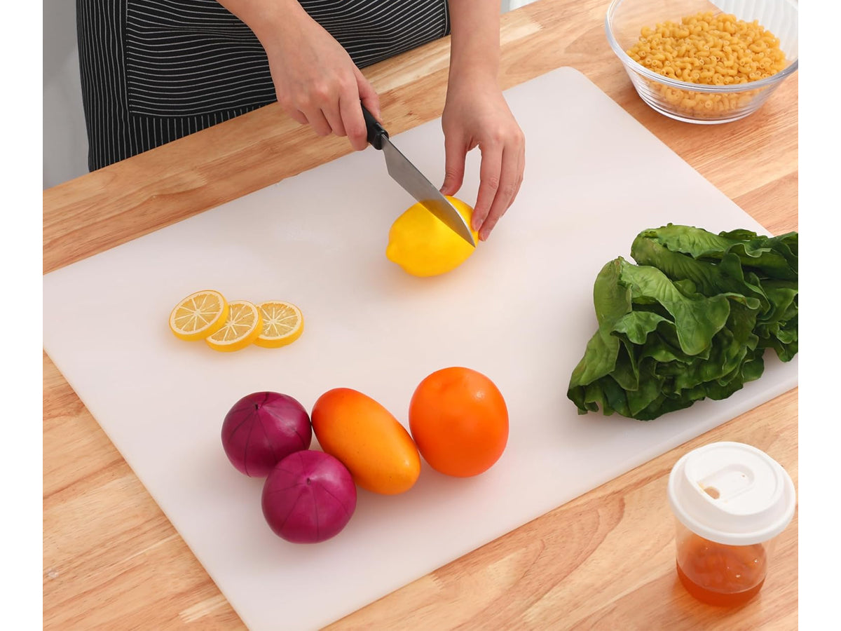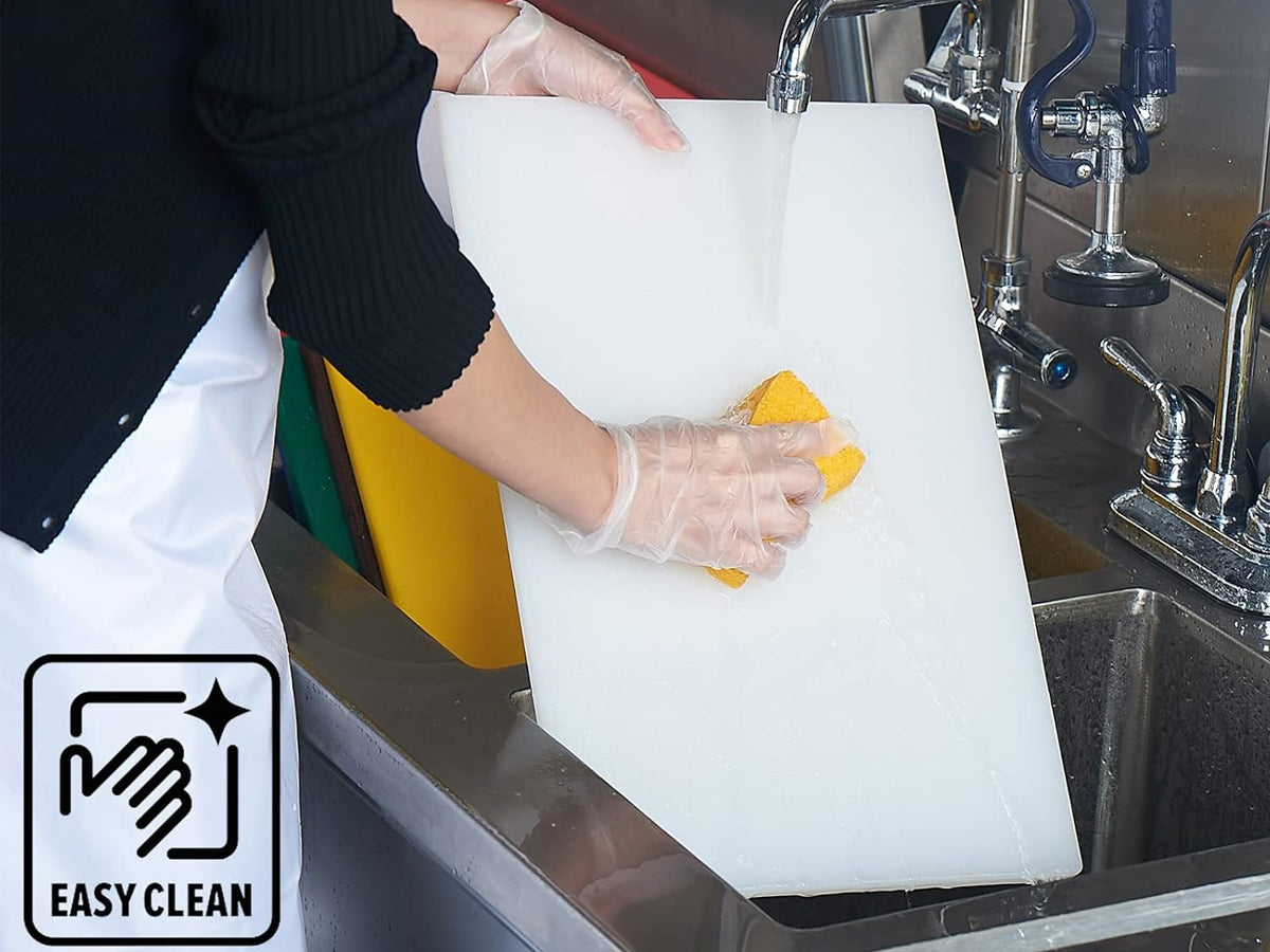 This plastic cutting board is made from a durable plastic polymer that will guarantee the longevity of the product. chopping board has a non porous high-density polyethylene surface so the chopping board will not dull knives, stain or absorb juices.