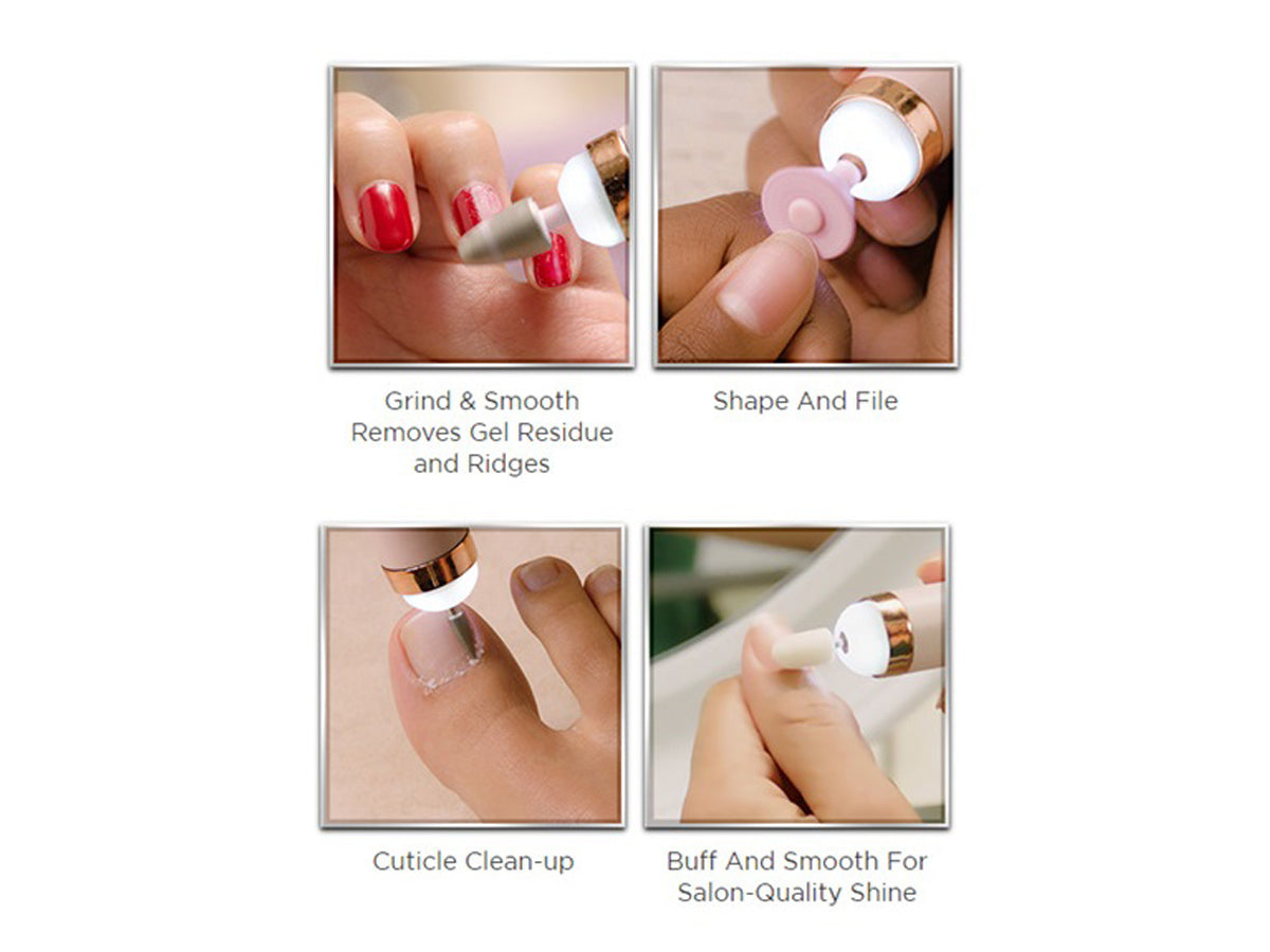 This rechargeable Electric Nail Drill with built-In light provides you with a clear view of the nails. It also includes 5 attachment heads, that: buff, shine, shape, and file as well. This cordless Polisher with a rechargeable battery and a variety of grinding drills can use it anywhere once fully charged.