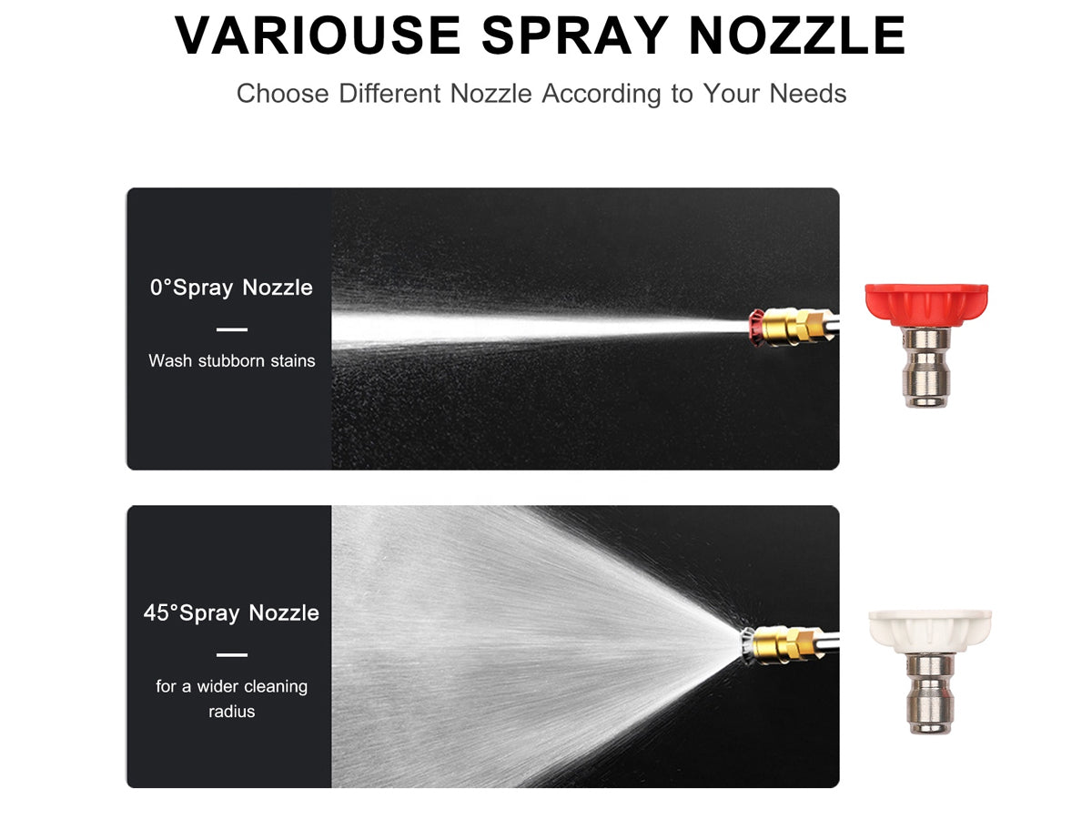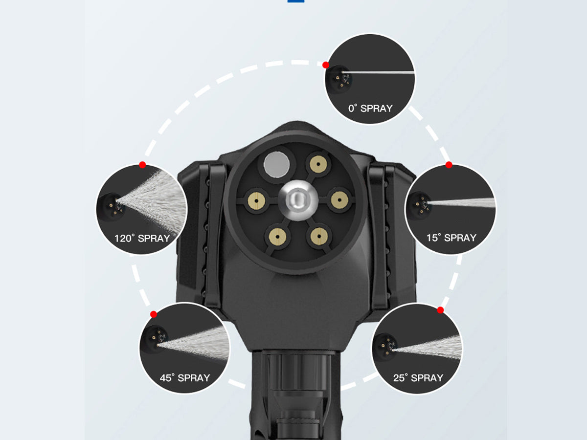 - Nozzle Angles: 0°, 15°, 25°, 40°, 120°