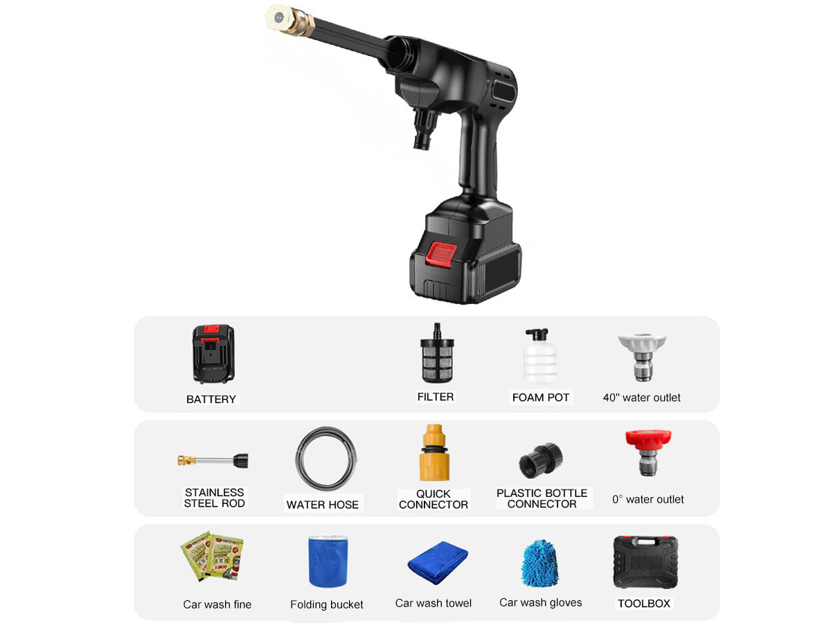 - Comes with a Rechargeable 15000mAh Battery High Pressure Washer Gun