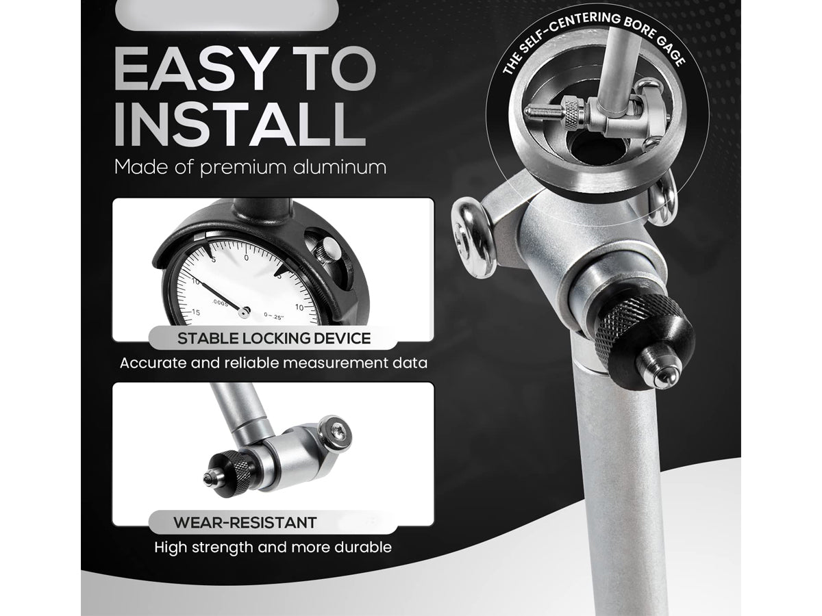 The Super Precision Deep Measuring Dial Bore Gauge is a high-quality, accurate, and durable tool for measuring workpiece diameter. Its 12pcs replaceable measuring heads make it a versatile choice for a variety of projects, while its high-quality chrome-plated handle provides a comfortable grip for comfortable use.