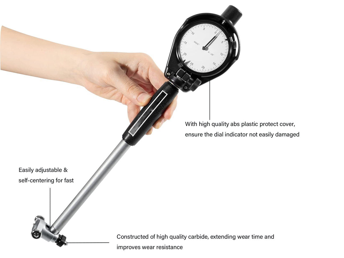 Achieve precise and reliable measurements with the Super Precision Deep Measuring Dial Bore Gauge. This Dial Bore Gauge versatile tool offers a wide measuring range of 50mm to 160mm, and its high accuracy of up to 0.01mm ensures high-precision measurements. With its waterproof, shockproof, and dust-proof design, this gauge is built to last, making it a durable and reliable choice for both personal and professional use.