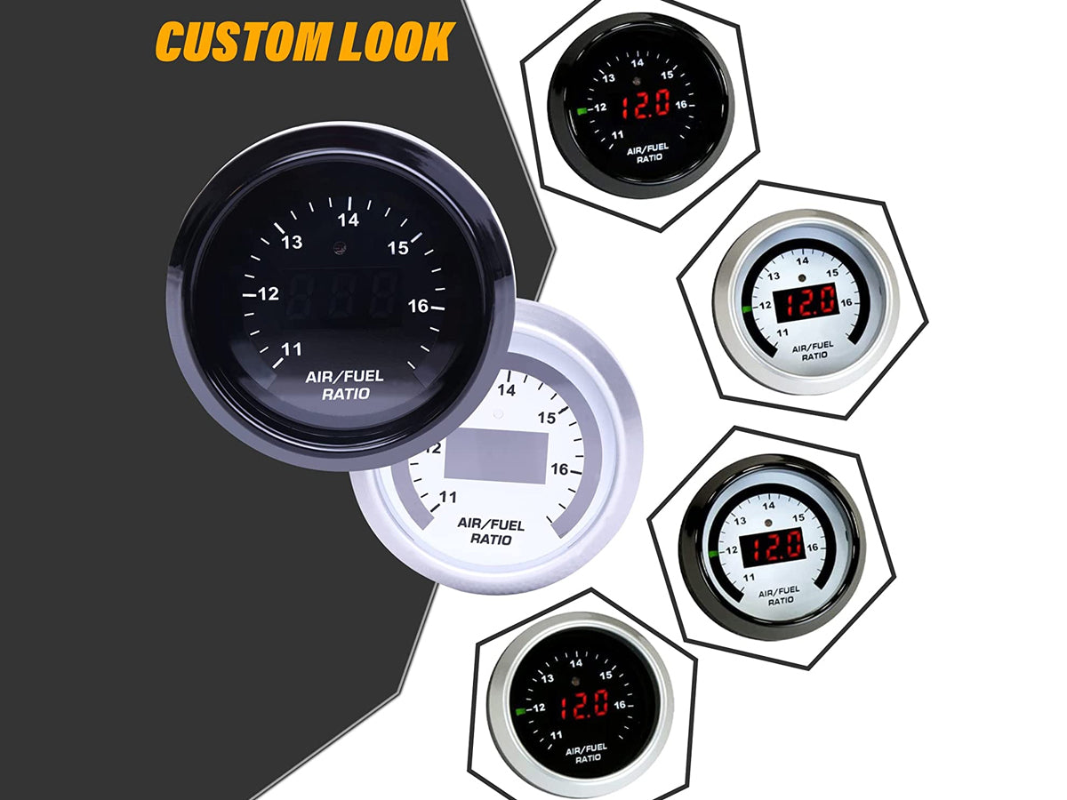 Experience optimal tuning and control with this 13 Pcs Digital Air Fuel Ratio Gauge Set. This reliable gauge allows you to accurately monitor and adjust your vehicle's air/fuel ratio for a safe and powerful tune. Its digital LED display provides easy-to-read and highly accurate data, ensuring you have the essential information at your fingertips. The gauge comes with interchangeable black and white faceplates, allowing you to customize its appearance to suit your preferences.