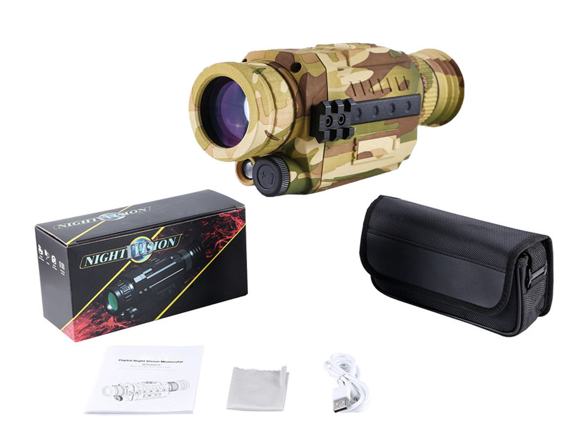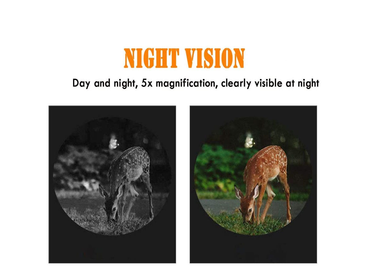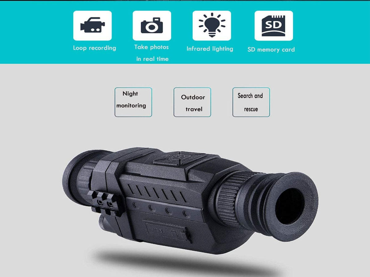 Introducing the Night Vision Monocular Telescope with a 1.54 Inch Digital LCD Screen, 5X Magnification, and 35mm Big Objective Lens. Perfect for Photos, Videos, and HD Photography, this Monocular Telescope is equipped with a Multi-layer Enhanced Green Film for Brighter and Higher-Contrast Images. Monocular Telescope comes With Rubber Coating, Monocular Telescope is protected from Impact and Wear, making it the perfect accessory for outdoor adventures.