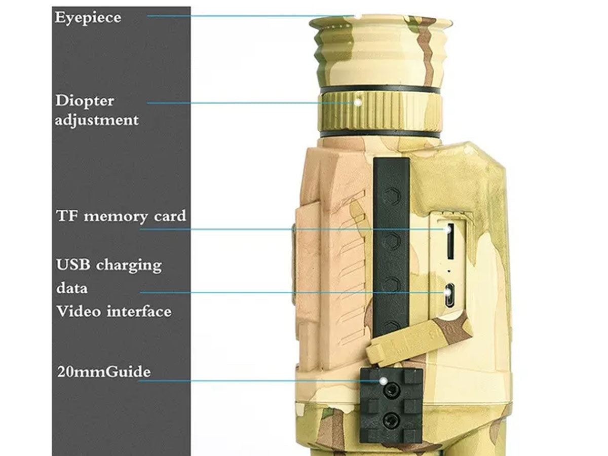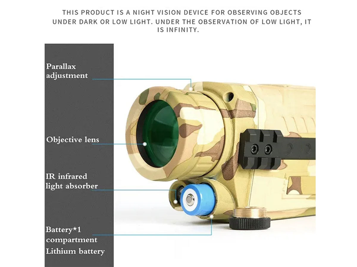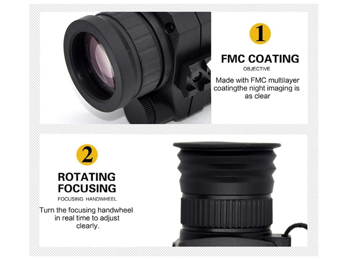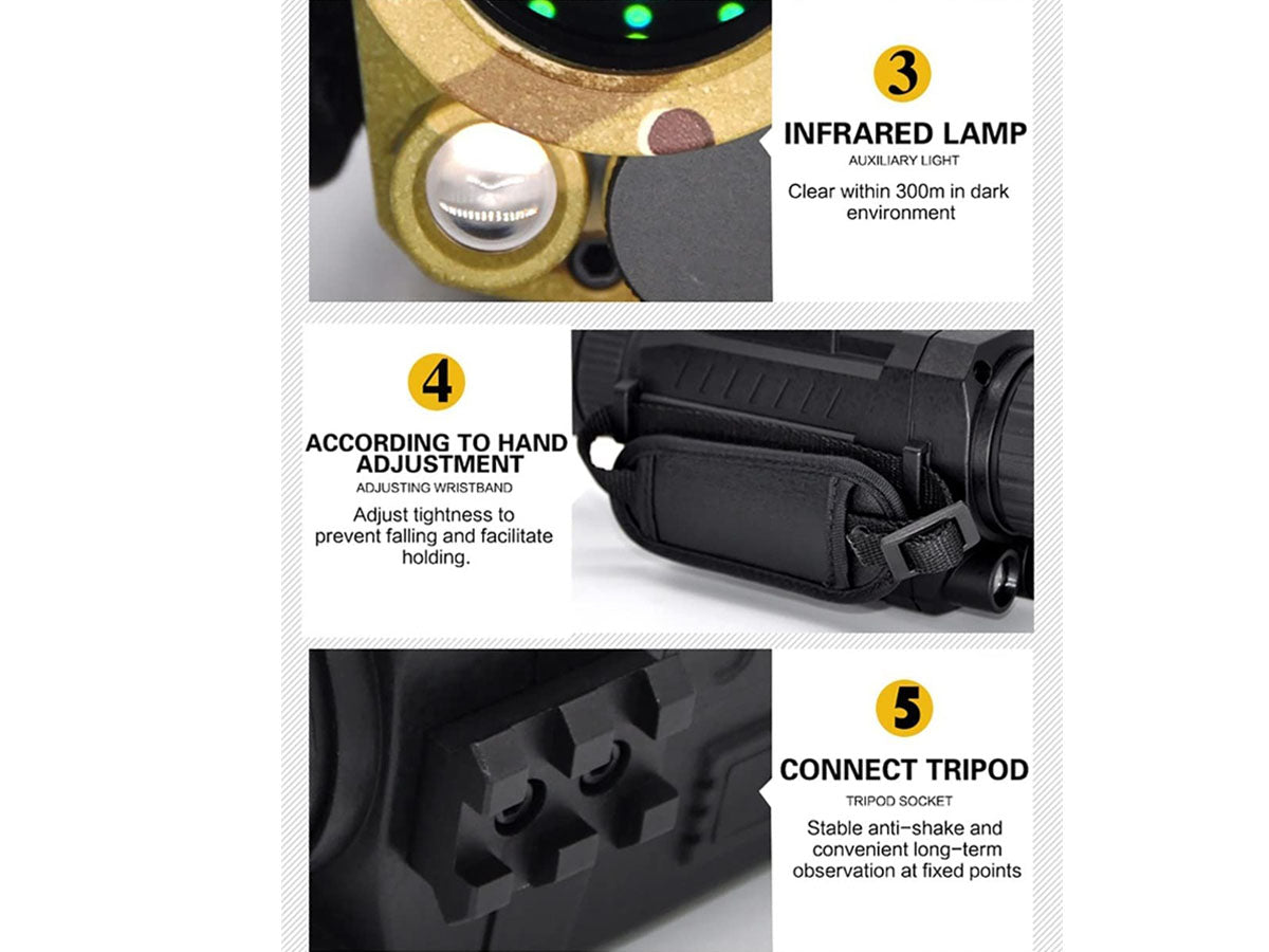 Introducing the Night Vision Monocular Telescope with a 1.54 Inch Digital LCD Screen, 5X Magnification, and 35mm Big Objective Lens. Perfect for Photos, Videos, and HD Photography, this Monocular Telescope is equipped with a Multi-layer Enhanced Green Film for Brighter and Higher-Contrast Images. Monocular Telescope comes With Rubber Coating, Monocular Telescope is protected from Impact and Wear, making it the perfect accessory for outdoor adventures.