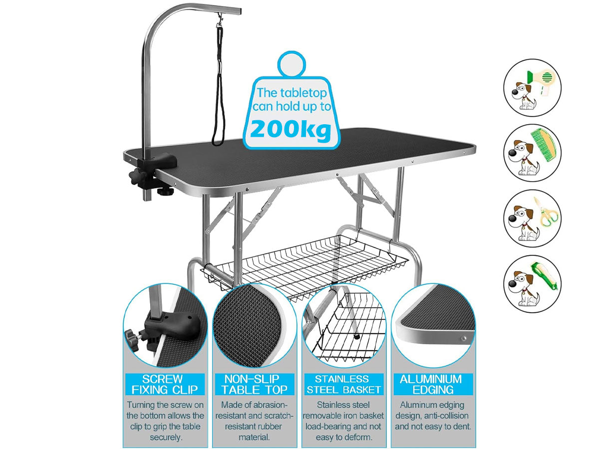 With a 200kg load capacity, storage basket for tools, and a foldable design for easy storage, this Dog Grooming Table is perfect for professional groomers or home use.