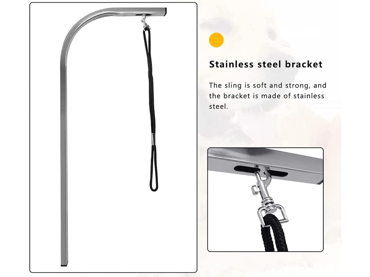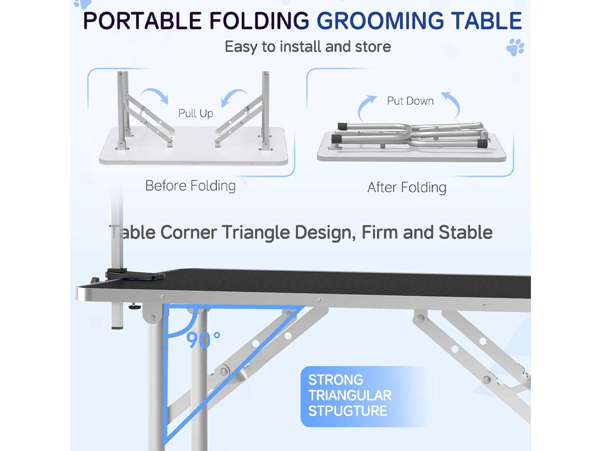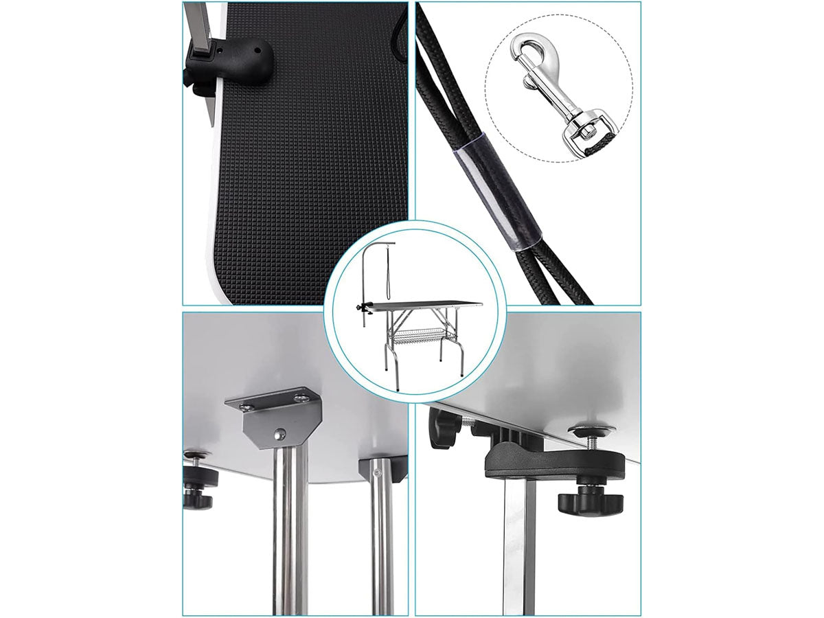 Make pet grooming easier, safer, and more professional with this foldable Dog Grooming Table. Designed for medium to large dogs, it features a sturdy stainless steel frame, a non-slip waterproof rubber PVC surface, and an adjustable grooming arm with a safety loop. The round-corner table design protects pets and groomers, while anti-slip rubber feet ensure extra stability during use.