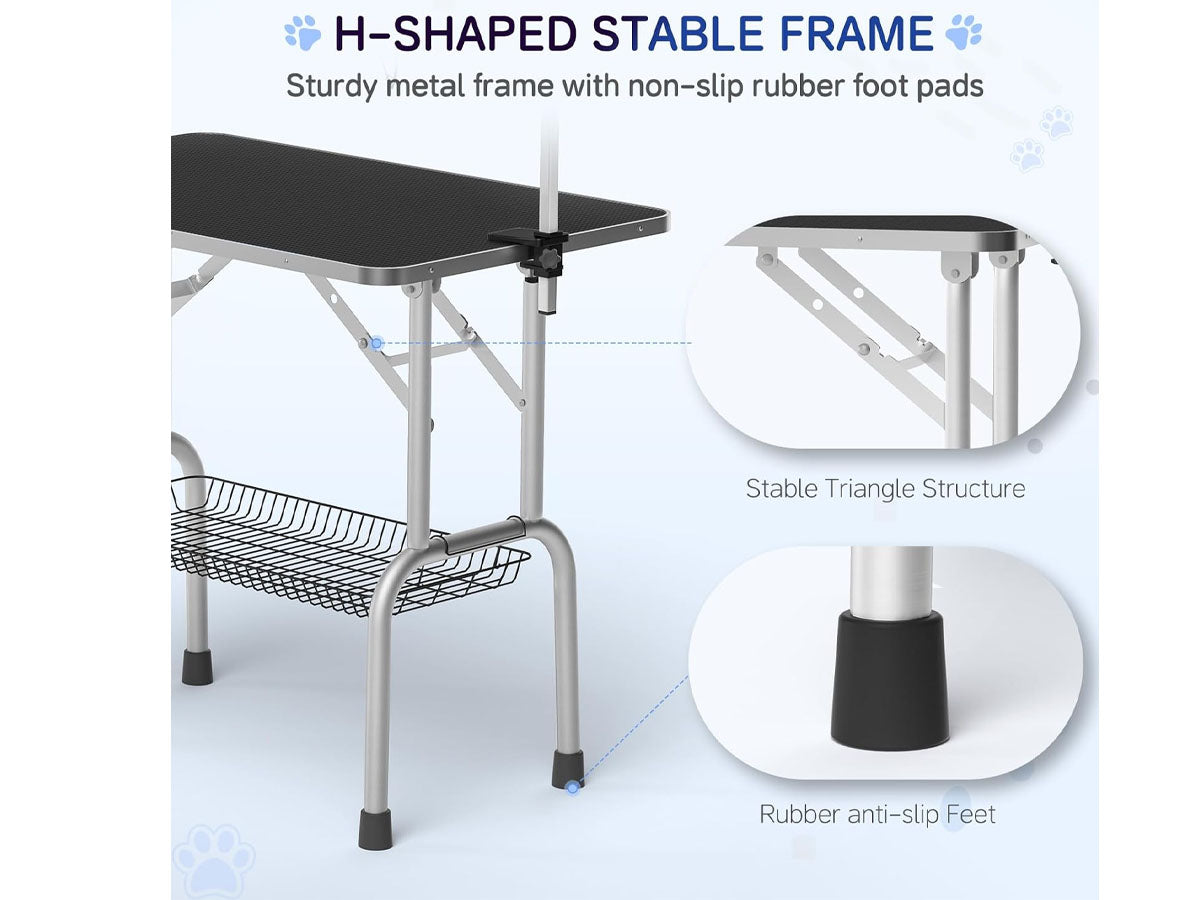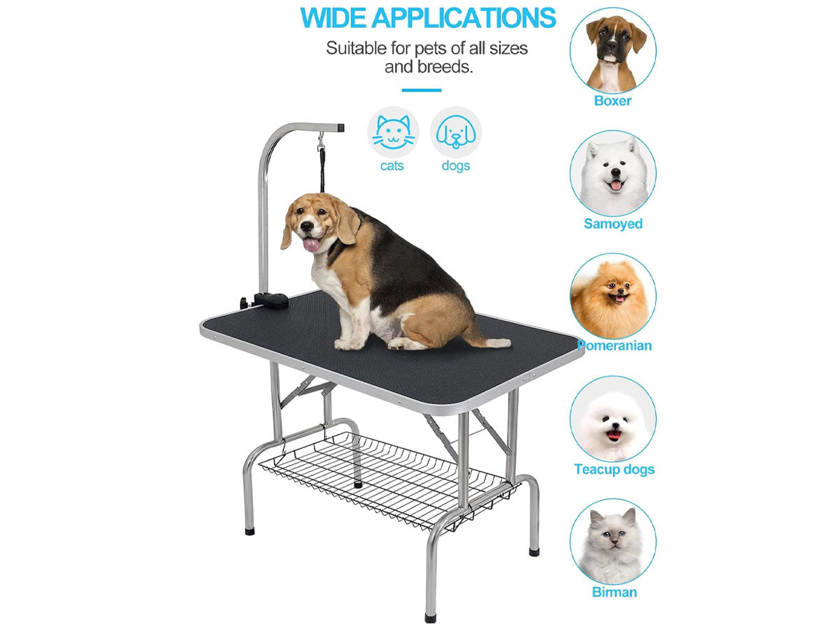 - Non-slip waterproof PVC rubber mat ensures pet stability during grooming