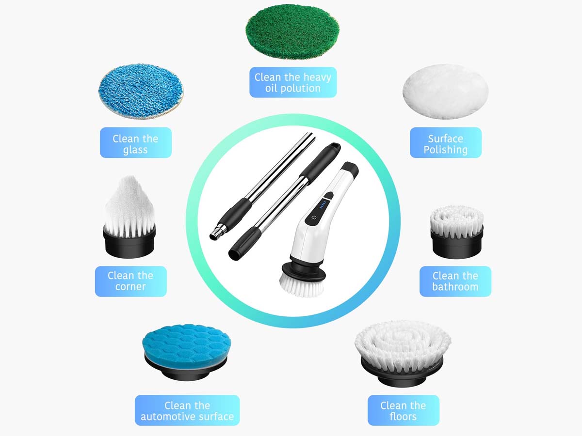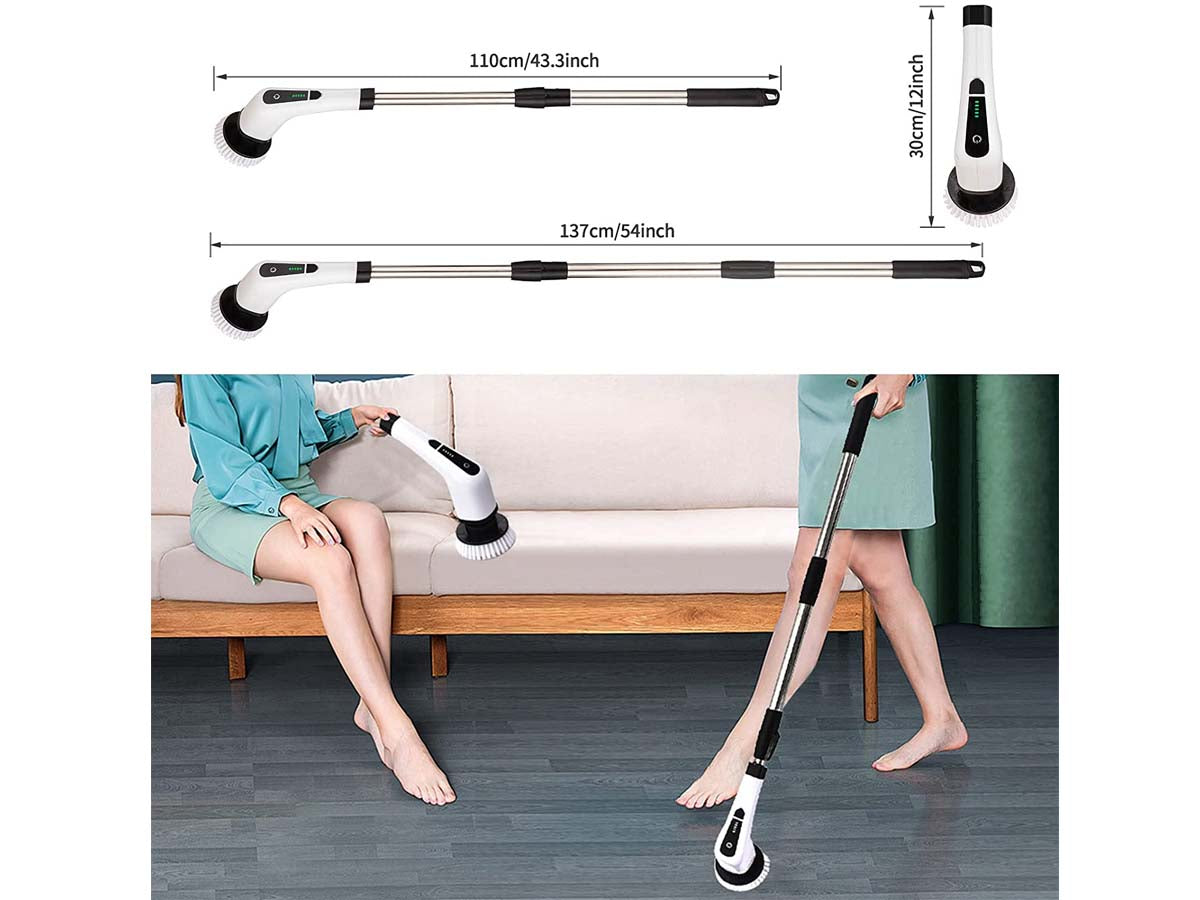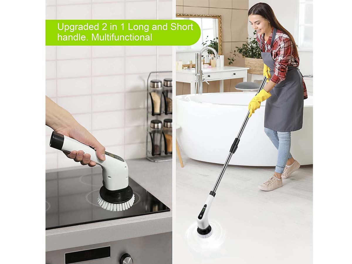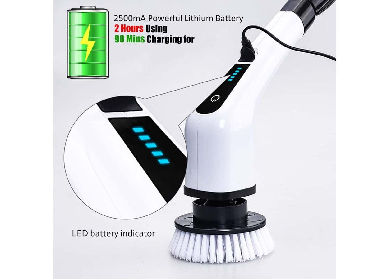 This Cleaning Brush is powered by a 2500mAh rechargeable battery, Fast charging in 1.5 hours, and can be used continuously for about 2 hours after being fully charged, Enough for daily cleaning. It also comes with a detachable extension arm, so you can easily clean ceilings and other out-of-reach areas.