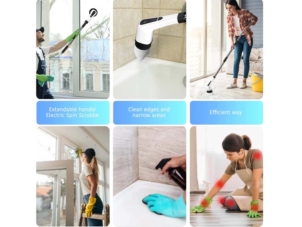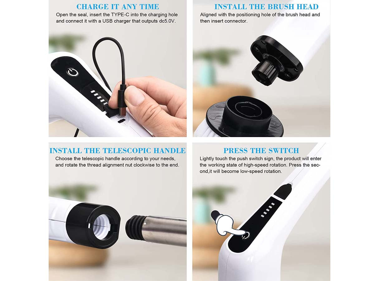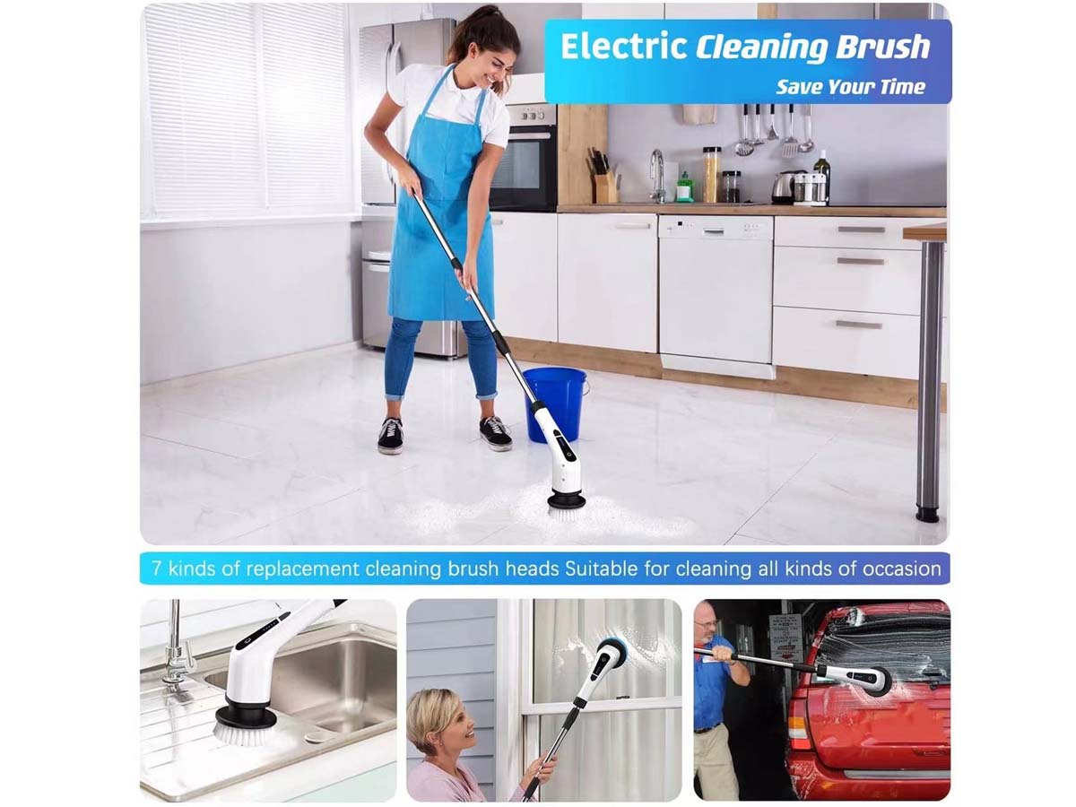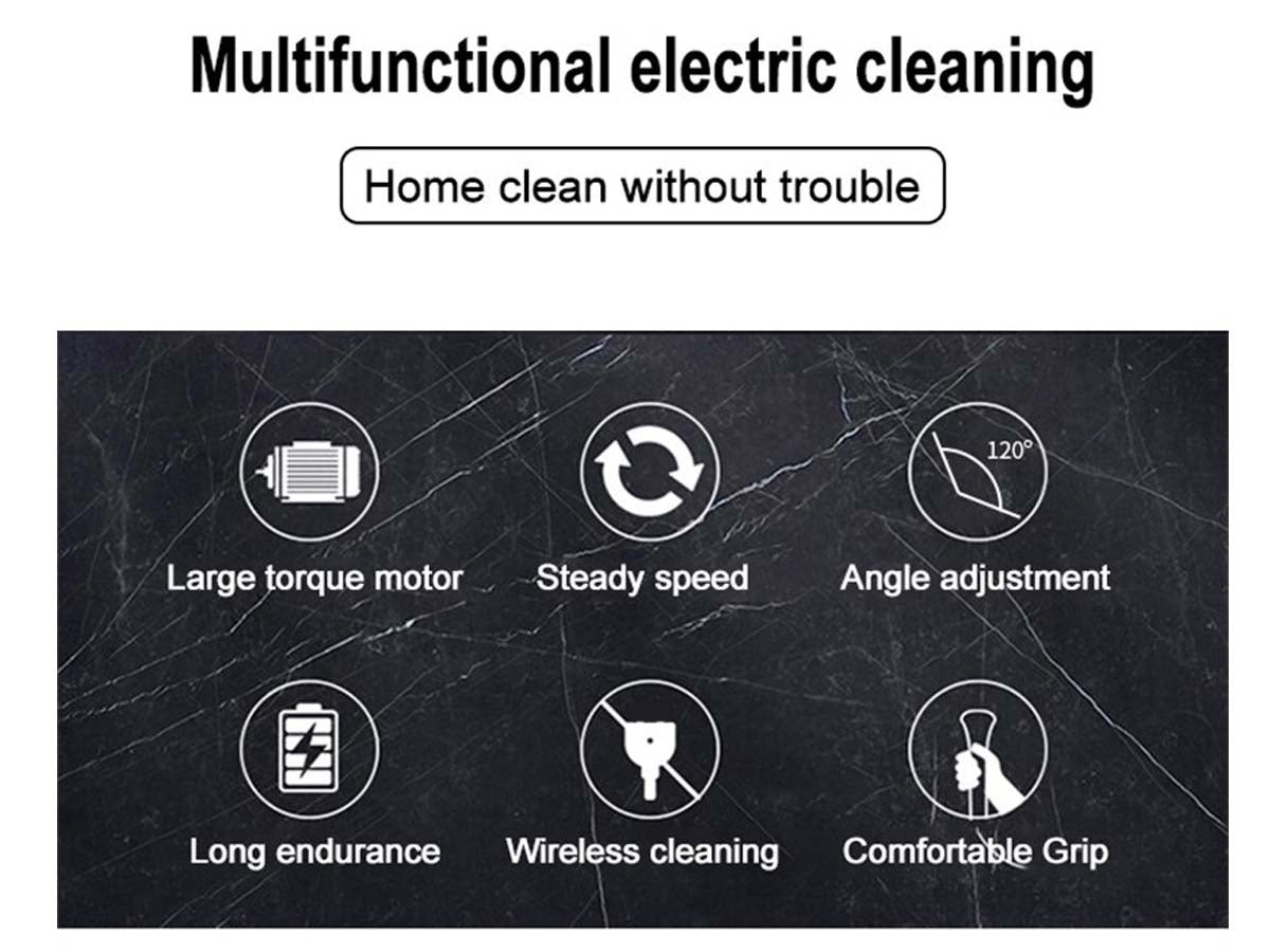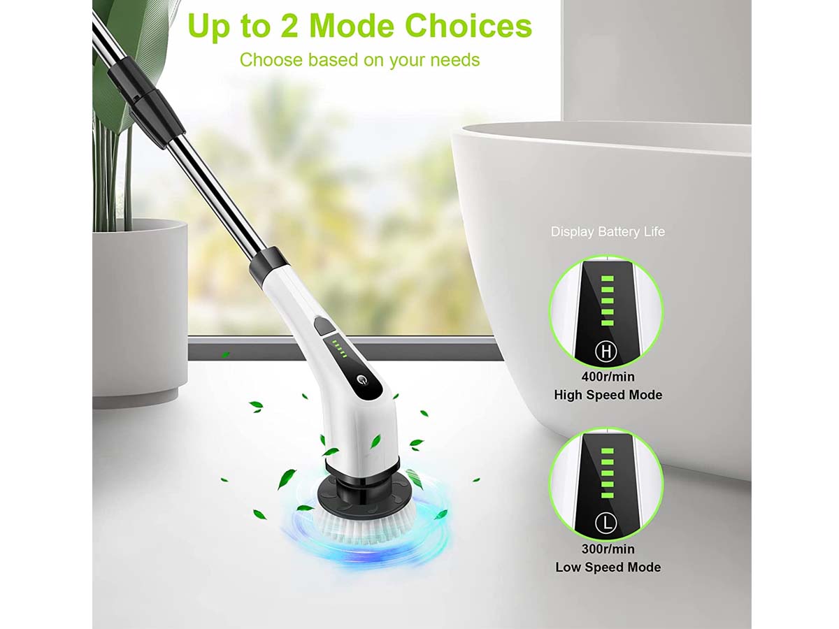 This Cleaning Brush is powered by a 2500mAh rechargeable battery, Fast charging in 1.5 hours, and can be used continuously for about 2 hours after being fully charged, Enough for daily cleaning. It also comes with a detachable extension arm, so you can easily clean ceilings and other out-of-reach areas.