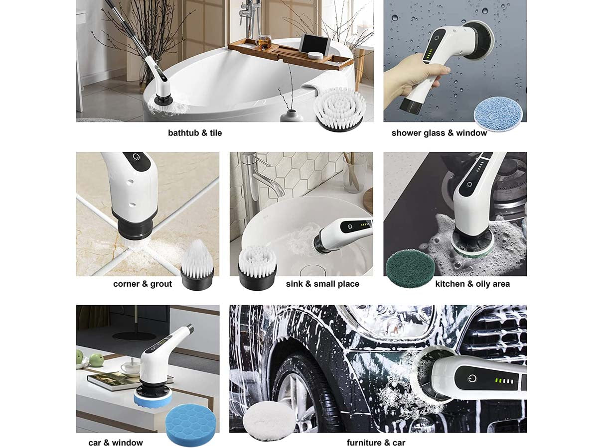 This 7-in-1 Rechargeable Electric Cleaning Brush with an extension pole gets a power clean with the rotating brush that spins at two different speeds i.e 400 RPM and 300 RPM. This Waterproof electric cleaning brush includes 7 spin scrubber heads, suitable for cleaning the bathroom, bathtub, shower, countertop, stove, sink, glass, cooking bench, tile, tub and so on.