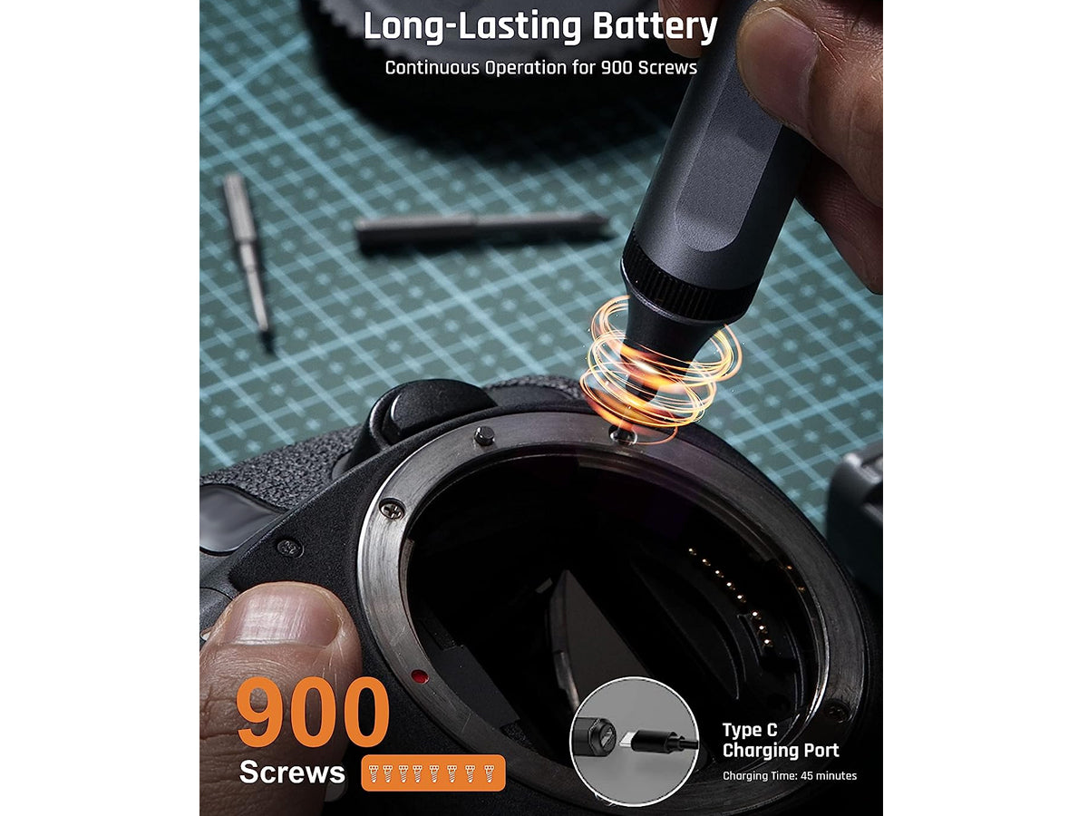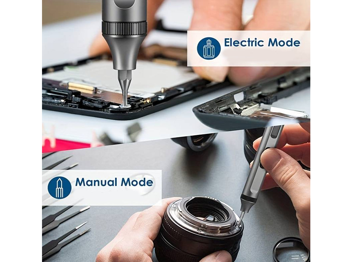 Upgrade your toolbox with the 50-in-1 Rechargeable Precision Magnetic Screwdriver Set. This versatile set combines a powerful motor, adjustable speed, and dual modes for effortless work. With built-in LED lights and a convenient metal case, it's the ultimate tool for precision work.