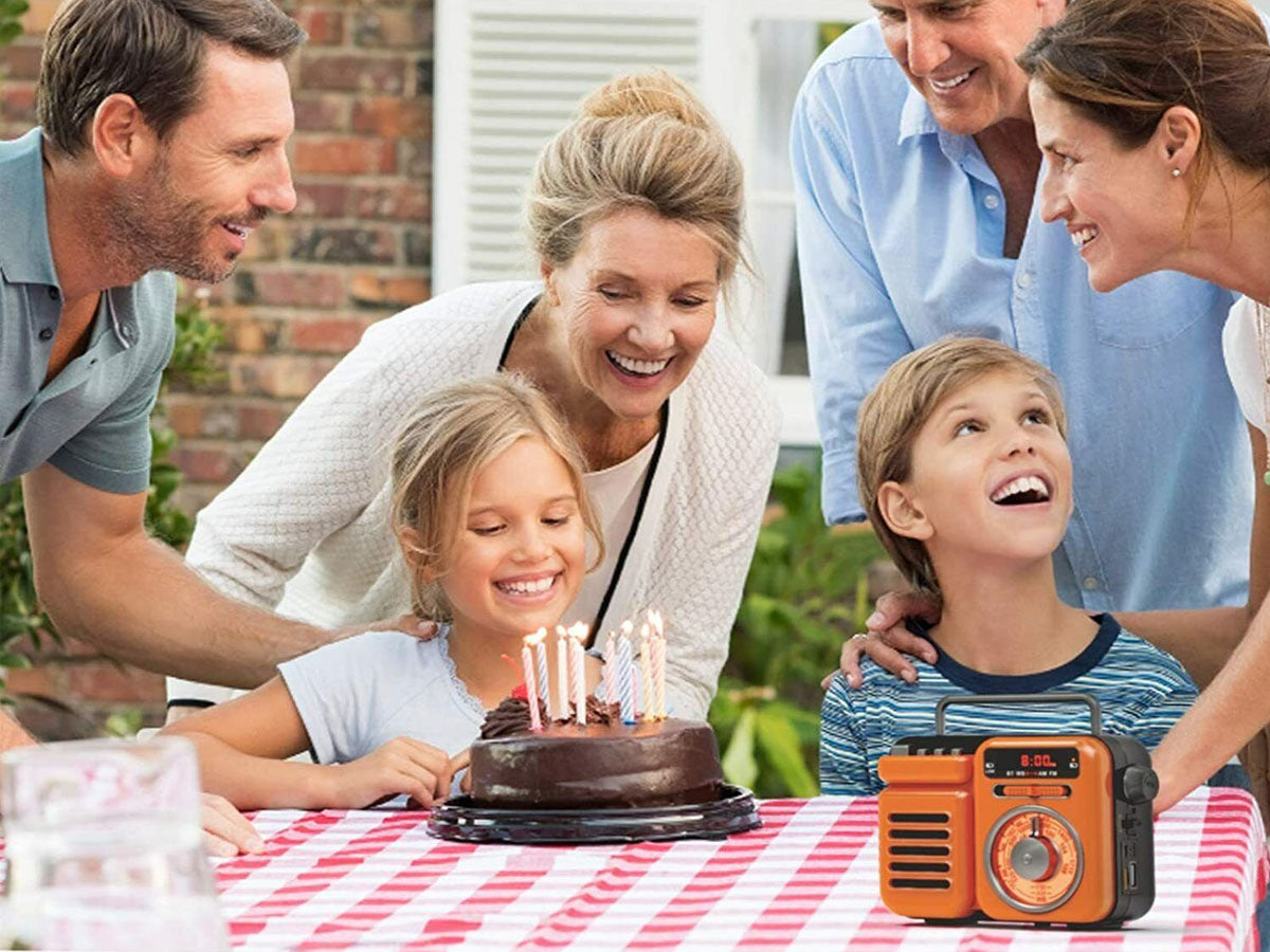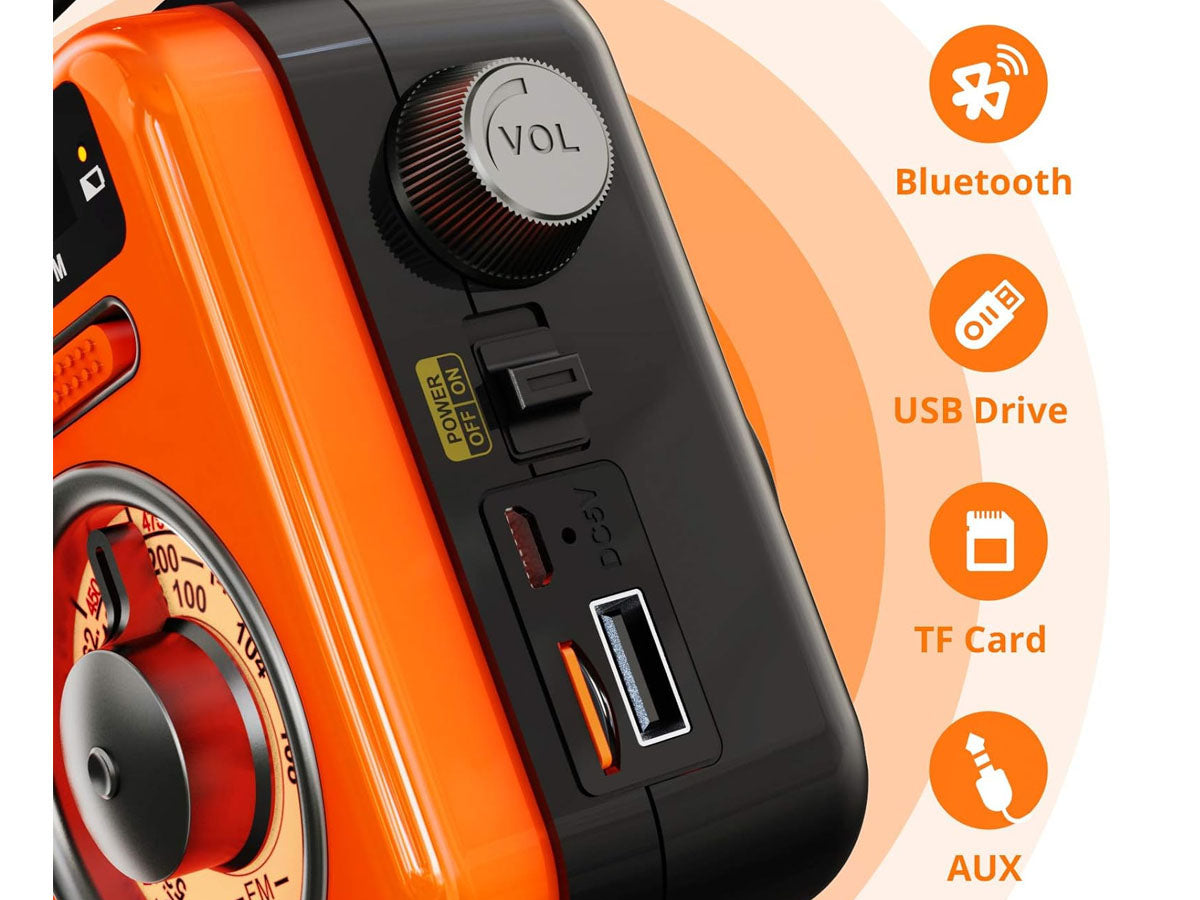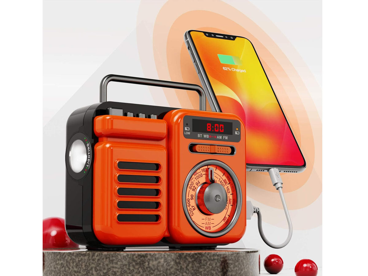 Experience ultimate versatility with our Portable FM Radio. This multifunctional device combines a Bluetooth speaker, AM/FM/NOAA radio, LED flashlight, digital alarm clock, a sleek retro-style look, and a powerful 2000mAh rechargeable battery.