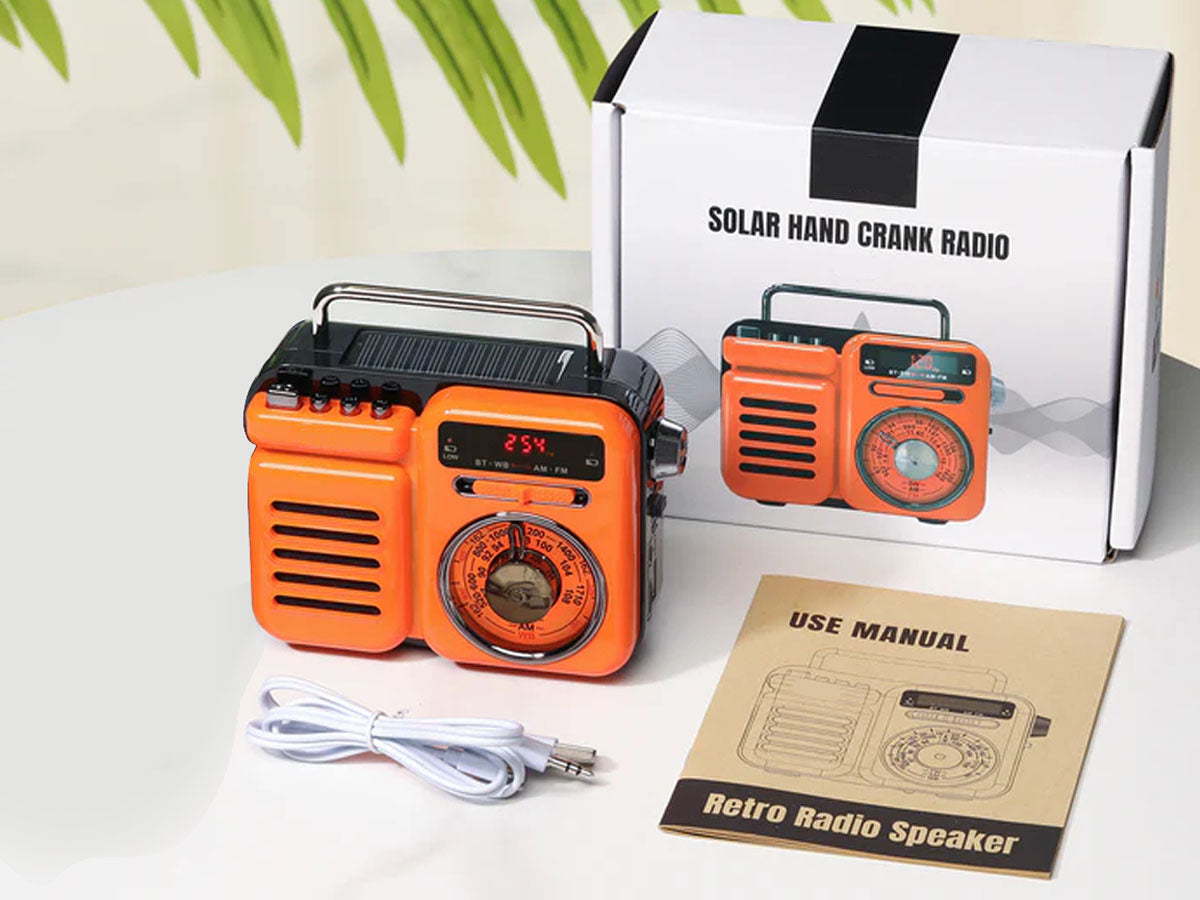 - 3 Modes of power supply; hand-cranked, Solar, and micro-USB charging