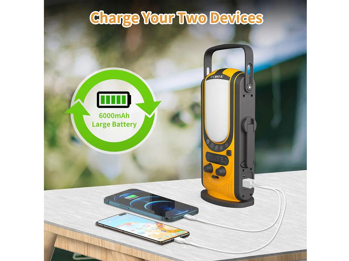 Our Portable FM Radio is your all-in-one solution for safety and preparedness. It offers essential features like FM/WB/NOAA reception, SOS alarm, LED camping and reading lantern, multiple power sources, dual-device charging, and more. Its rugged IP66 waterproof and dustproof design ensures durability in challenging conditions. Stay informed with access to 7 NOAA stations, and enjoy flexible illumination with 2 lighting modes and 4 brightness levels.