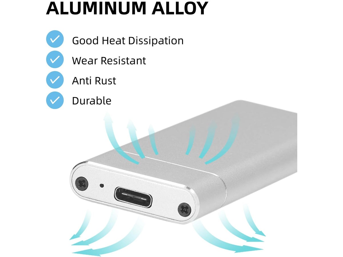This External SSD Hard Drive Enclosure Box is compatible with multiple operating systems including Windows, Mac, and Linux. Moreover, the fine aluminum alloy housing increases thermal conductivity and allows better heat dissipation and fast cooling.
