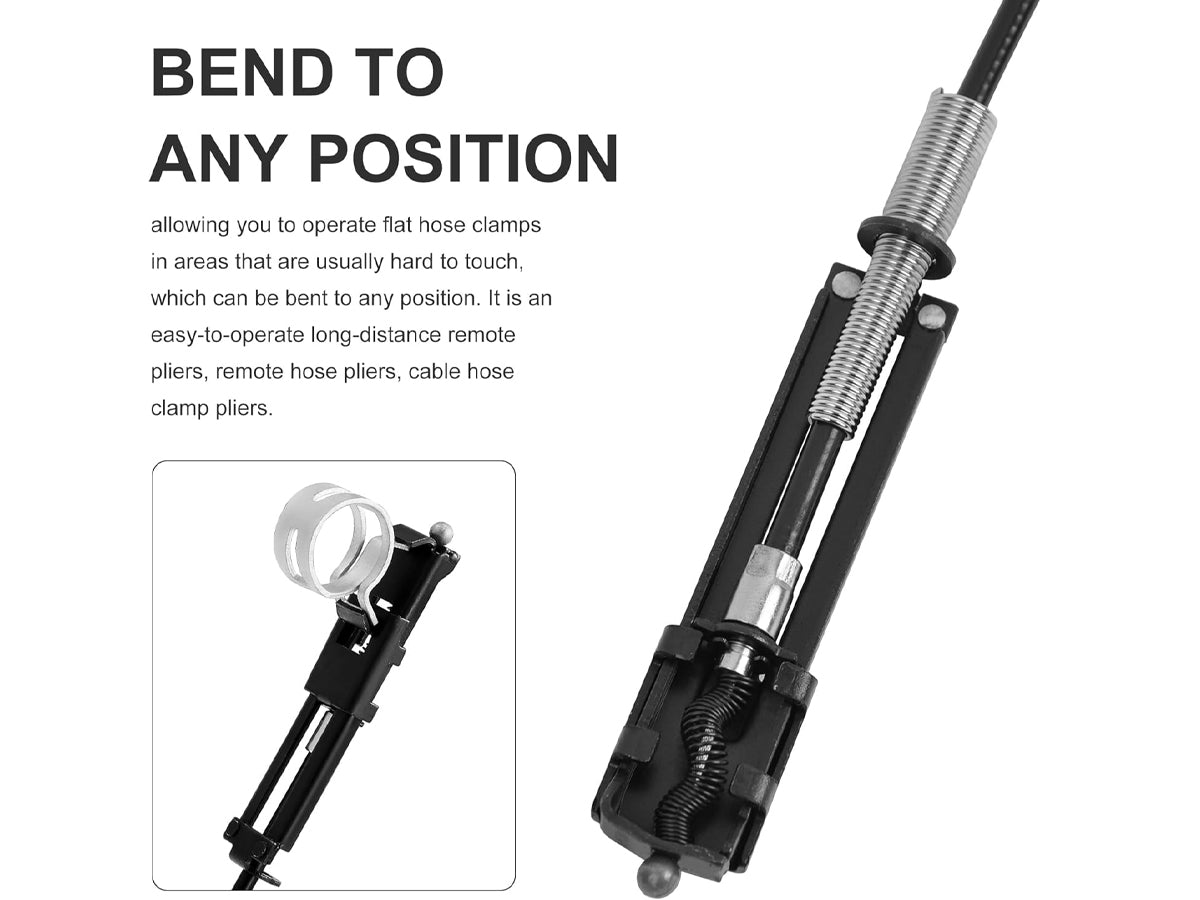 This High quality and practical Flexible Hose Clamp Pliers make it easy to remove and install the clip. Flexible Hose Clamp Pliers allow you to access flat hose clamps located in hard-to-reach areas. The sturdy cables can be bent to almost any position.