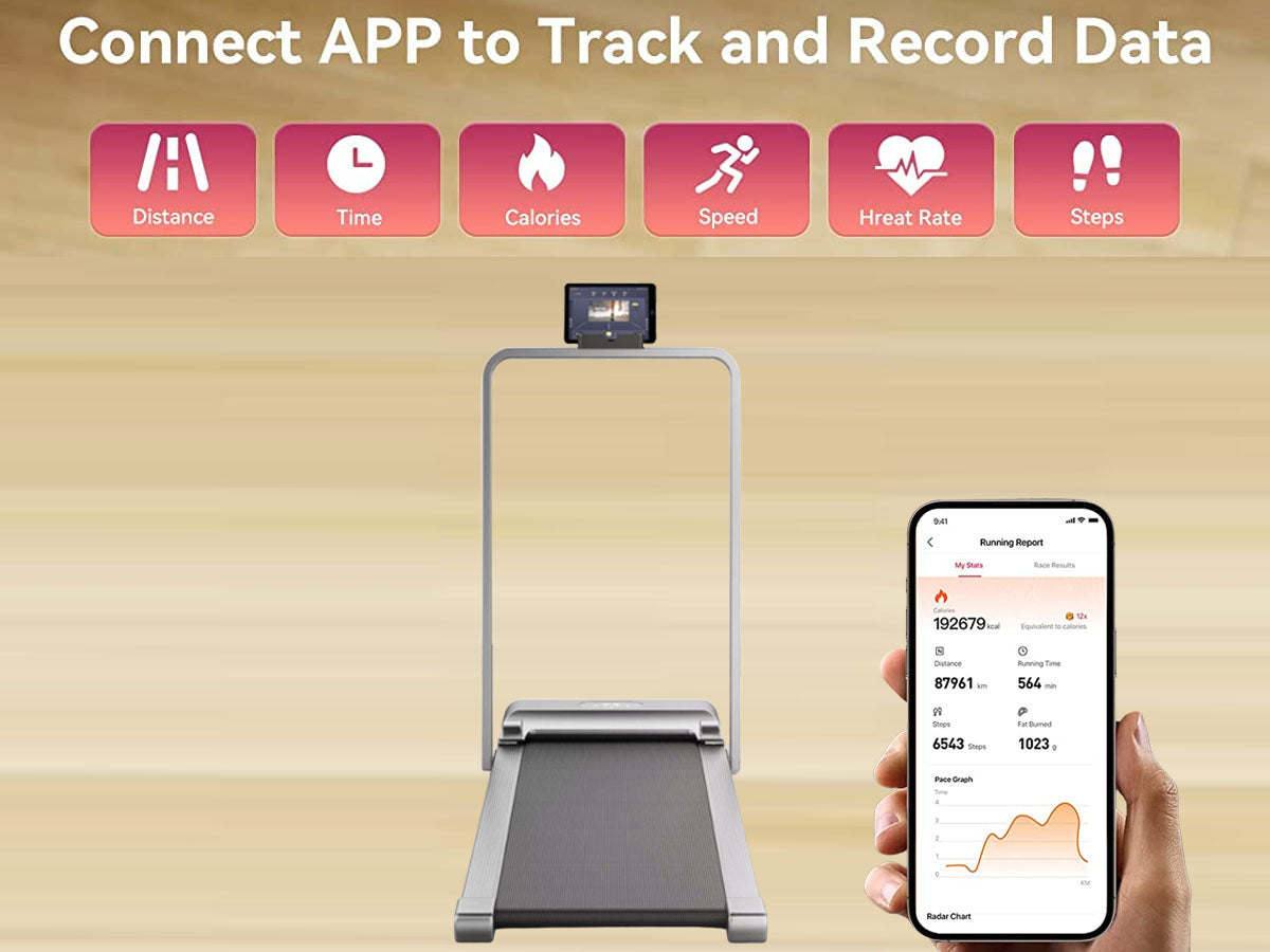 Introducing the Treadmill with Armrest, a powerful and innovative fitness equipment designed to enhance your workout experience. The LCD provides real-time workout data, while the wear-resistant and non-slip running belt ensures safety and durability. Wirelessly control the treadmill through the remote control or our intuitive mobile app. The slim body and upgraded foldable armrests allow for easy storage and portability.
