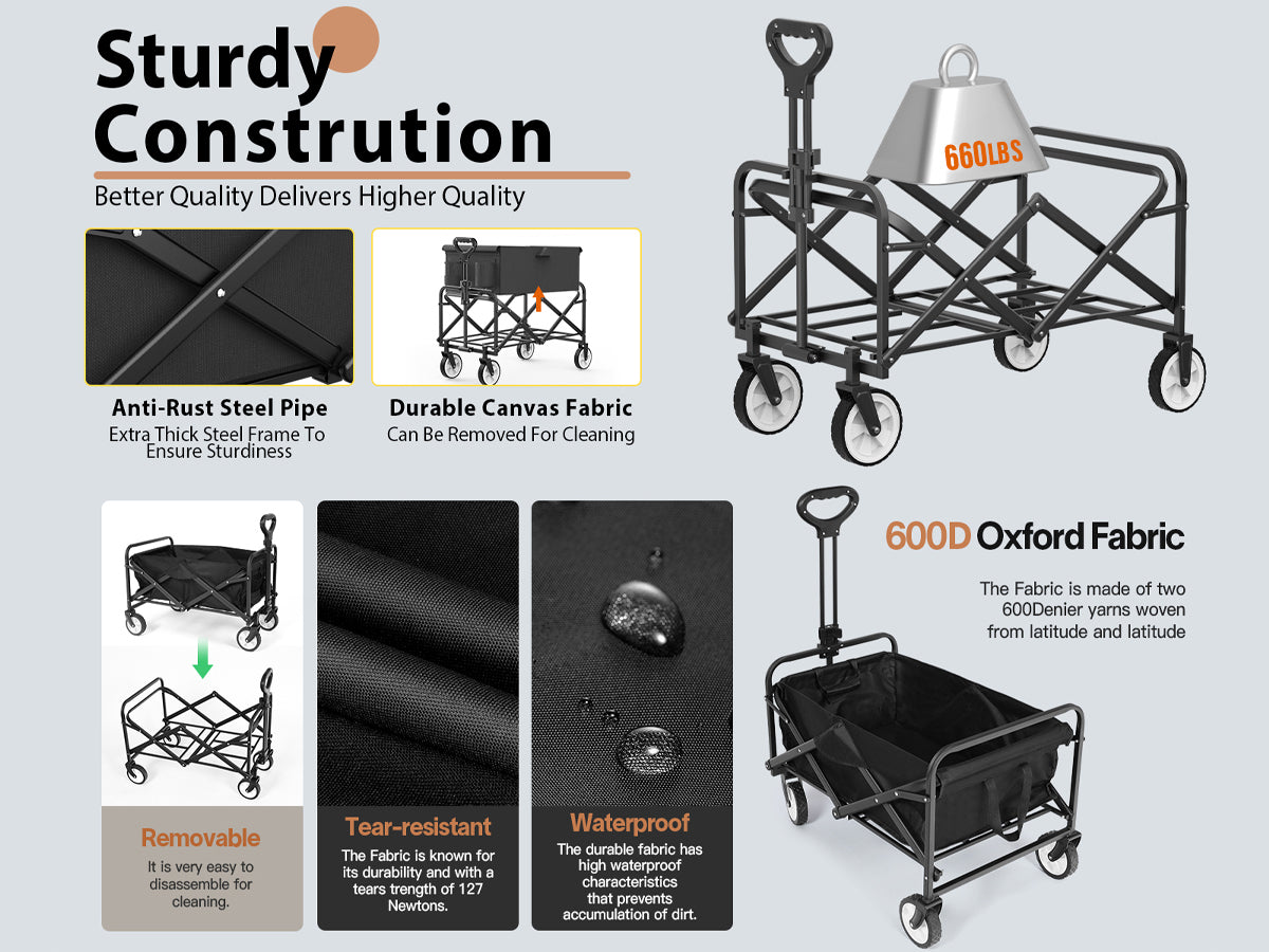 Perfect for camping trips, gardening, sports events, shopping, beach days, and general transport of heavy items.