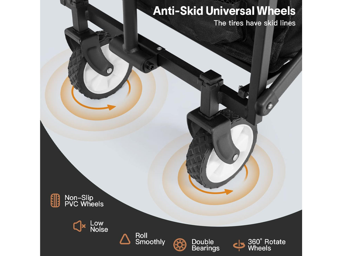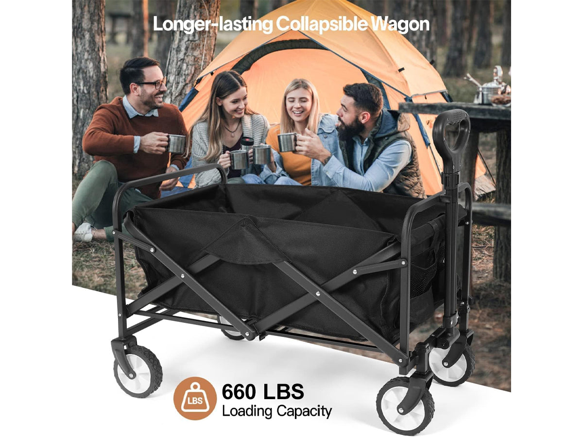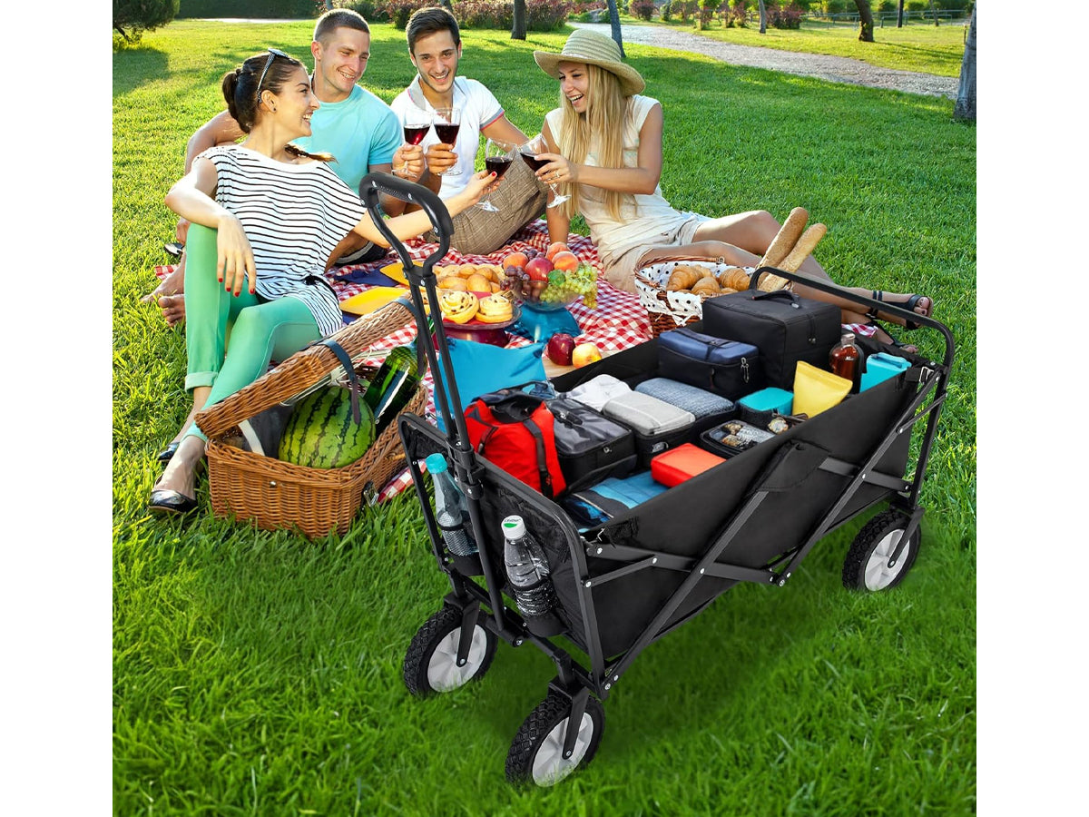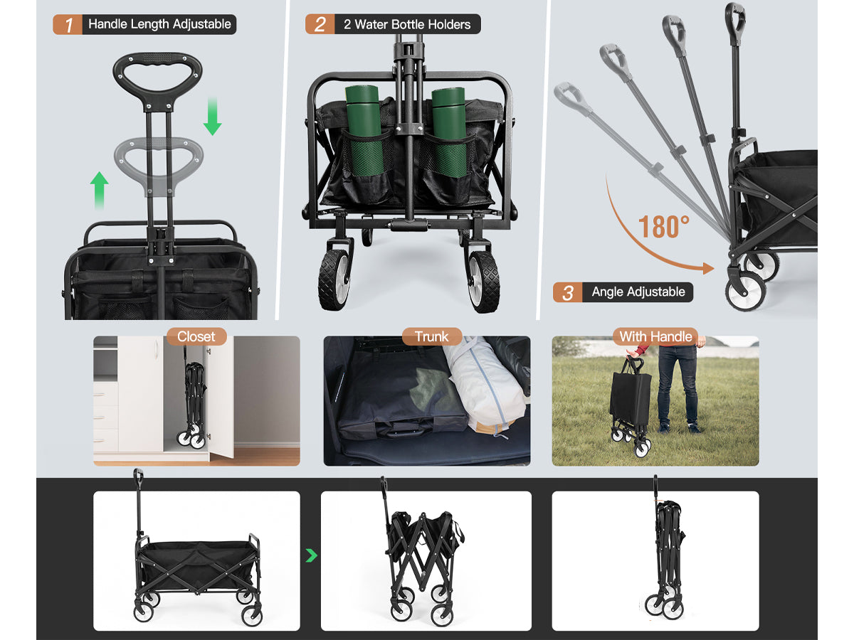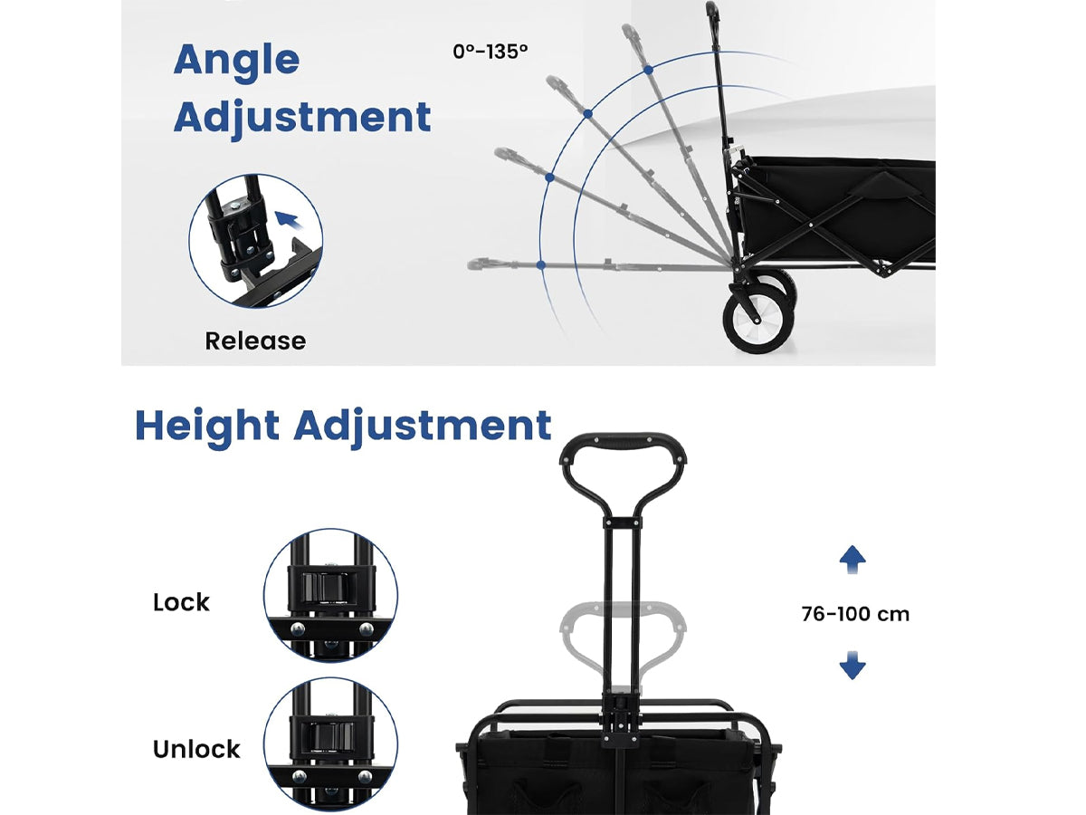 - Folding Trolley Cart Wagon with Adjustable Handle and Cup Holders