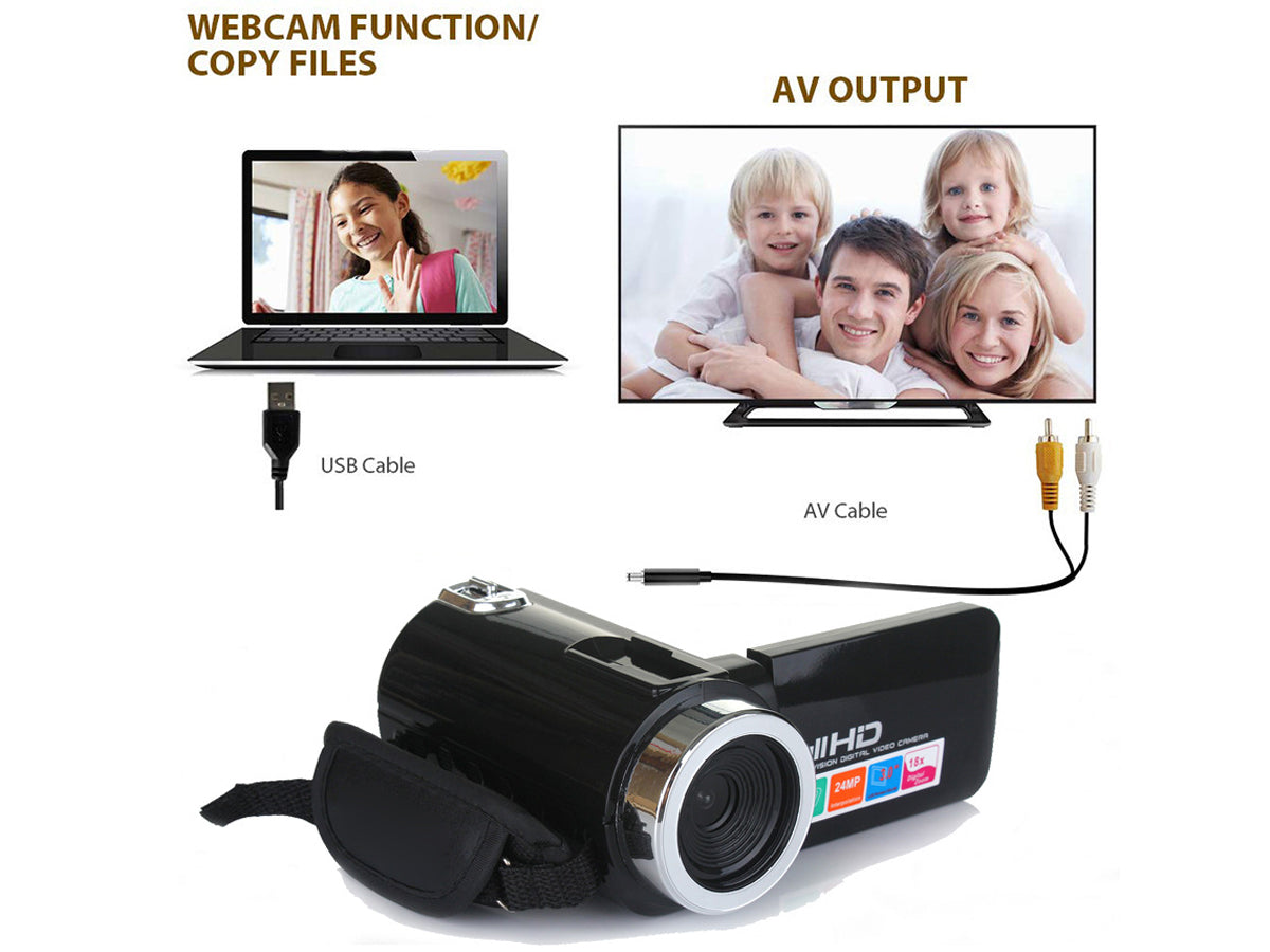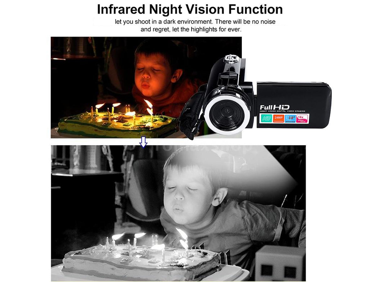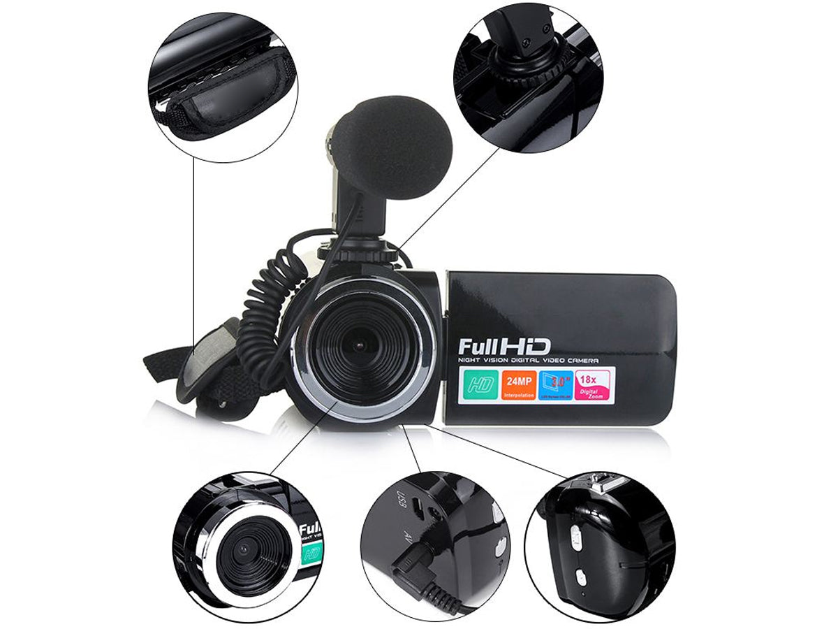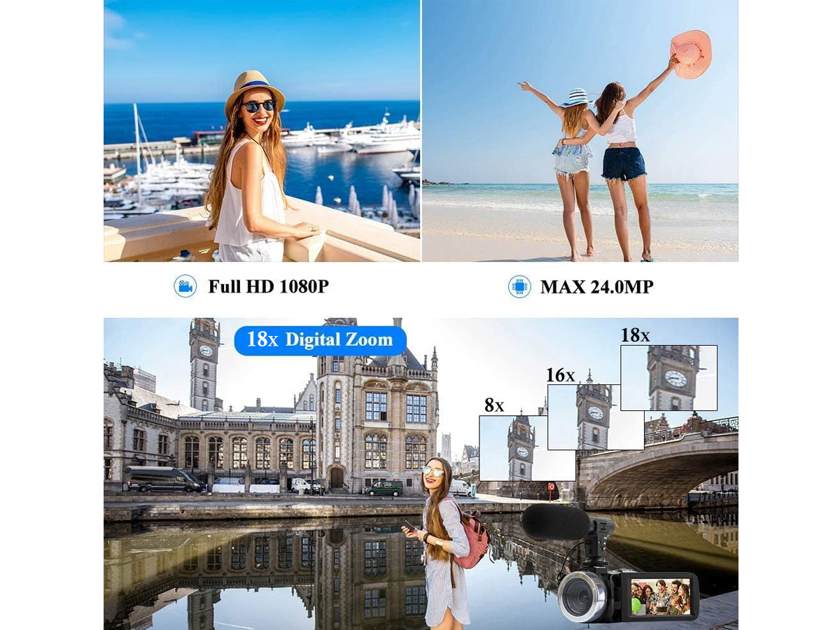 This FHD Camcorder video recorder has a 3.0" TFT-LCD which supports 270° rotation, 18X digital zoom, 24MP HD pixels record while charging, etc. The pictures and videos are crisp and clear