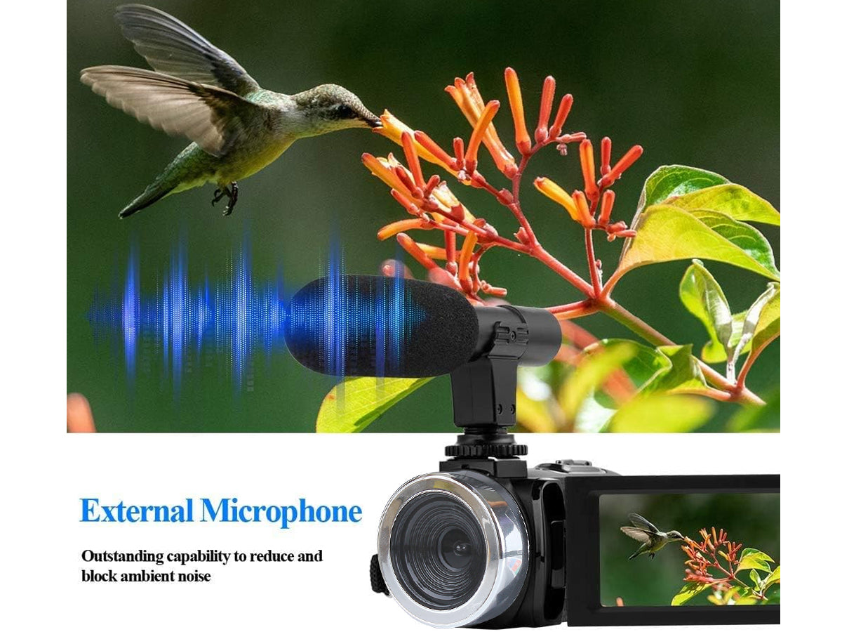 This HD Camcorder video recorder itself has a built-in microphone, which can be used to effectively reduce noise during recording so that the sound quality is more real. This HD Camcorder video recorder also supports both an external microphone/ and light as well.