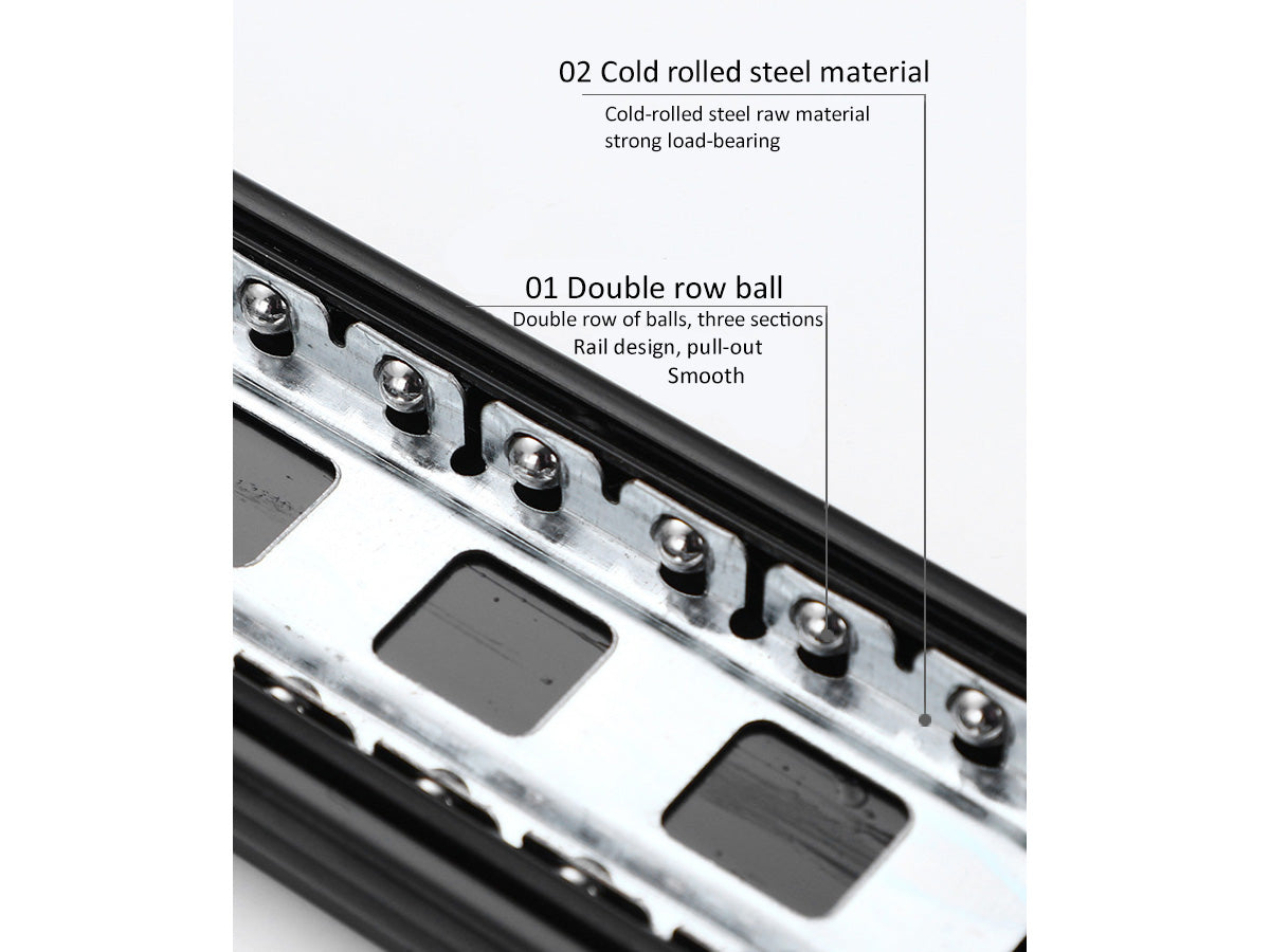 - Double row of solid steel balls makes the drawer open more smoothly