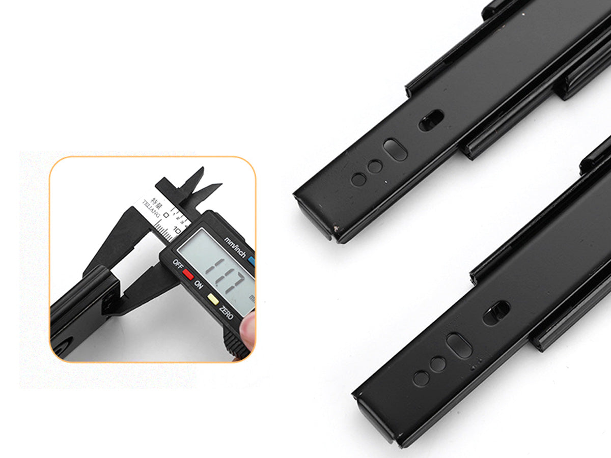 This 12" Drawer Slides is made from High-Grade Stainless Steel. The Electrophoretic coating prevents air from coming into direct contact with the steel plate of the rail, thus resisting rust and improving corrosion resistance. Rubber cushion, avoid the push and pull collision during use, double row of solid steel balls make the drawer open more smoothly.