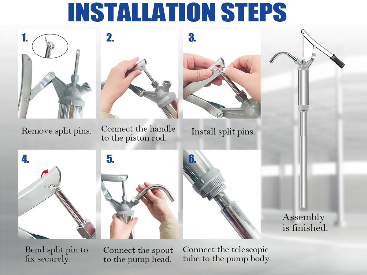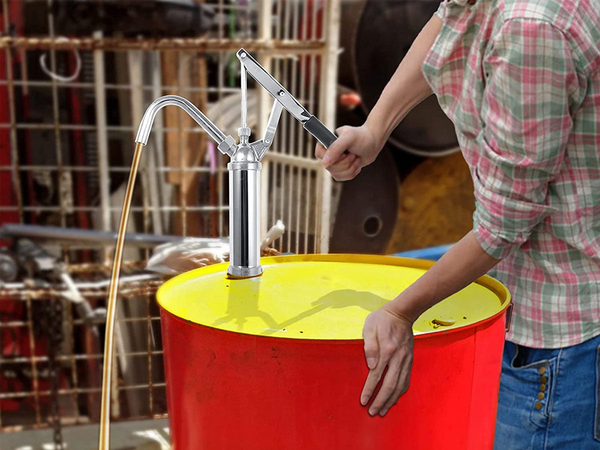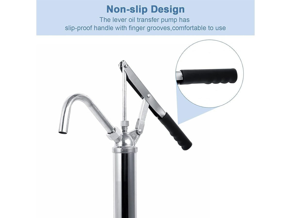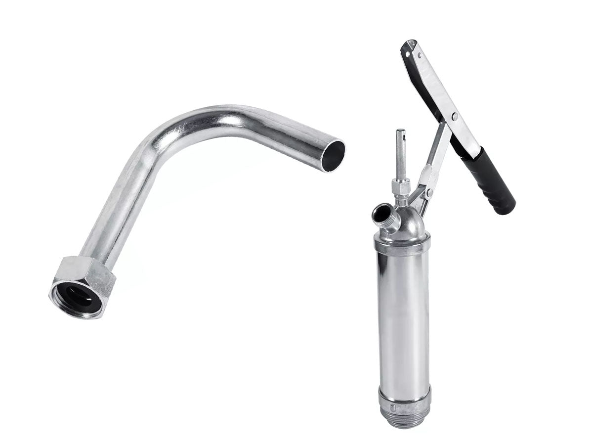 This lever-action Hand Oil Pump with a self-adjusting telescoping suction tube for flexible dispensing and operations. Oil inlet pipe with 4-semi circular intakes prevents liquid from clogging. This detachable barrel Hand Oil Pump is very easy to connect, the removable metal nozzle with thread fits easily on the hose and bends allow convenience for use.