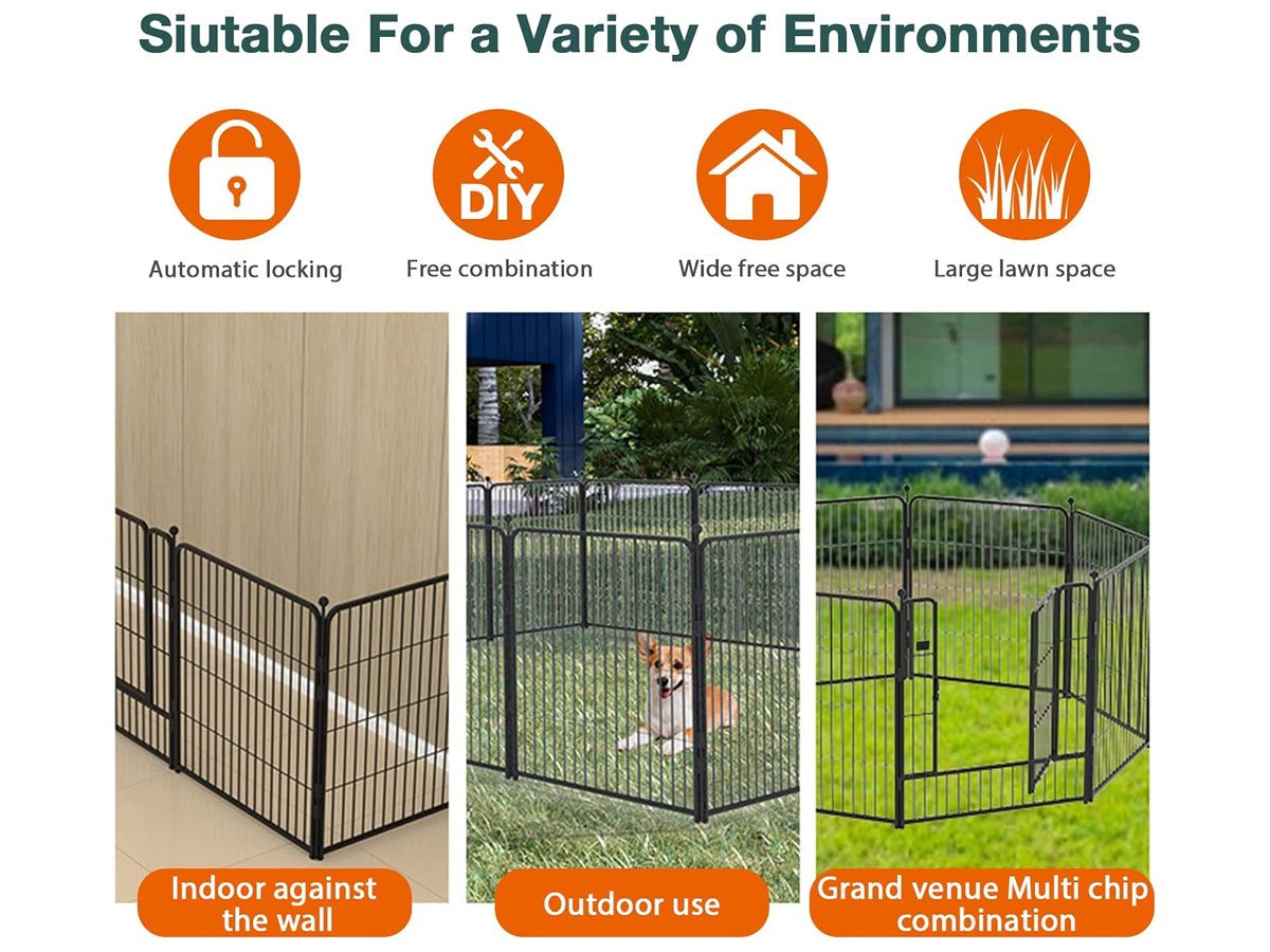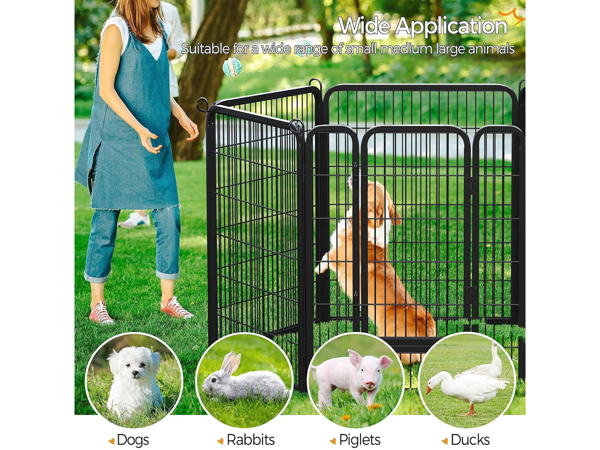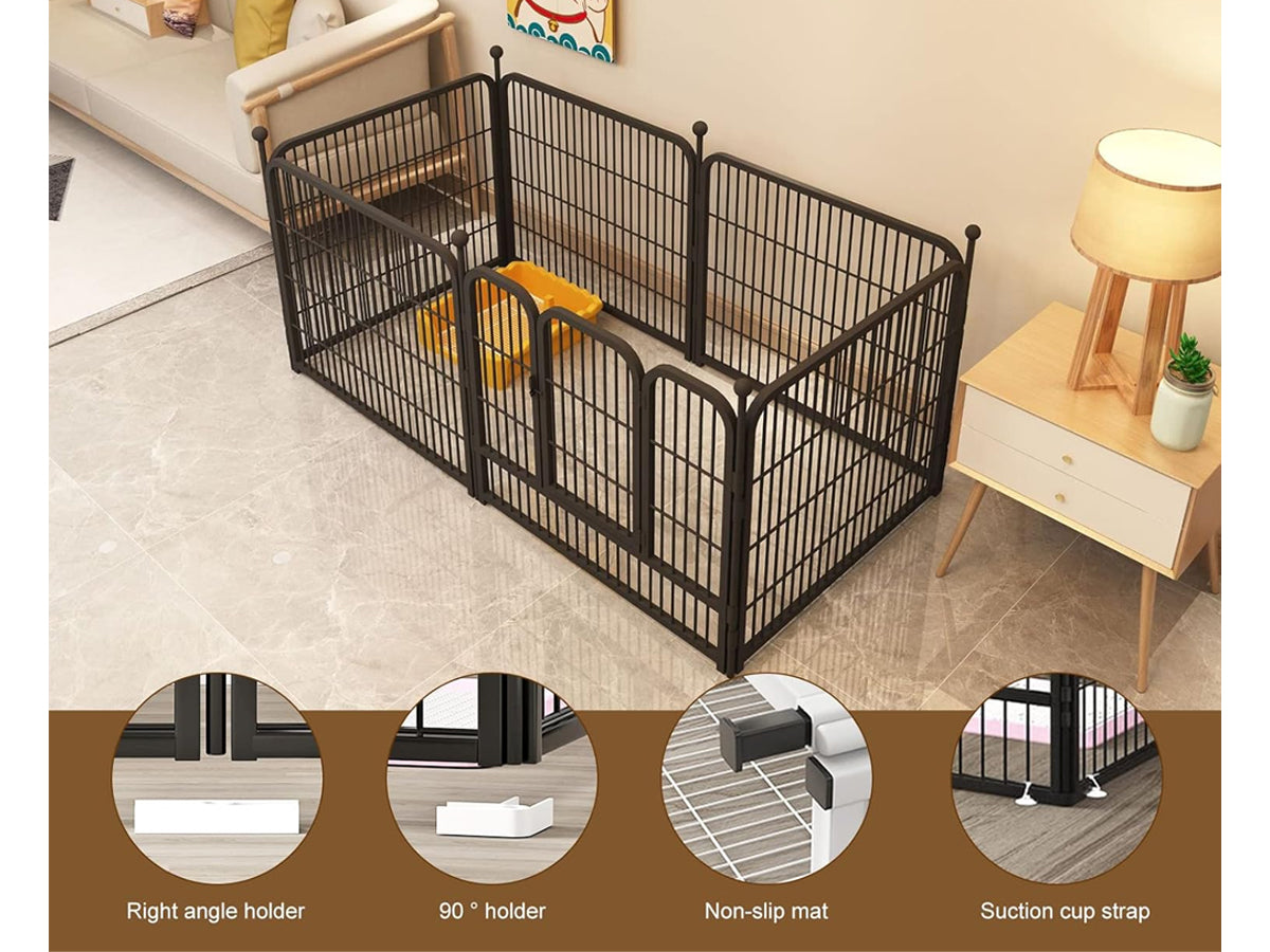This Dog Play Pen Metal Fence is ideal for creating a safe, versatile space for pets indoors or outdoors, ensuring their security.