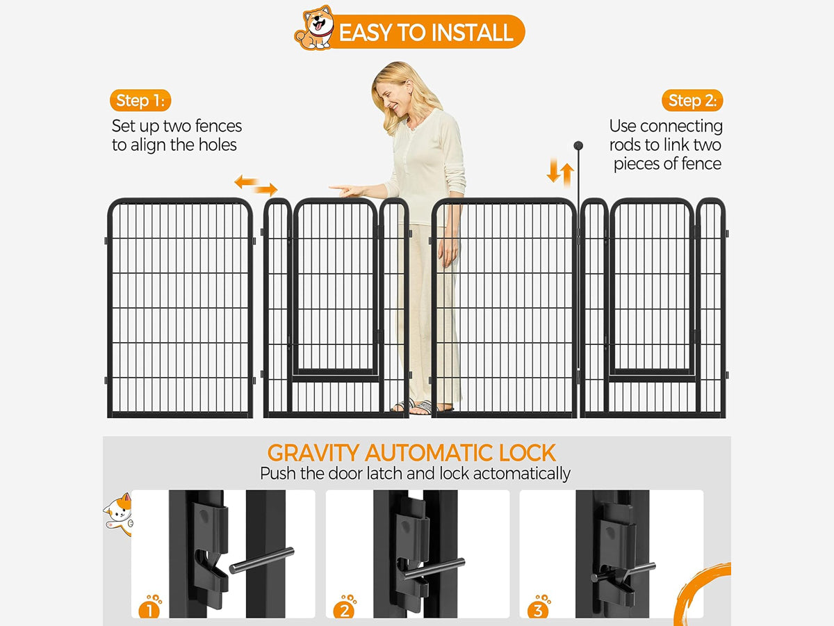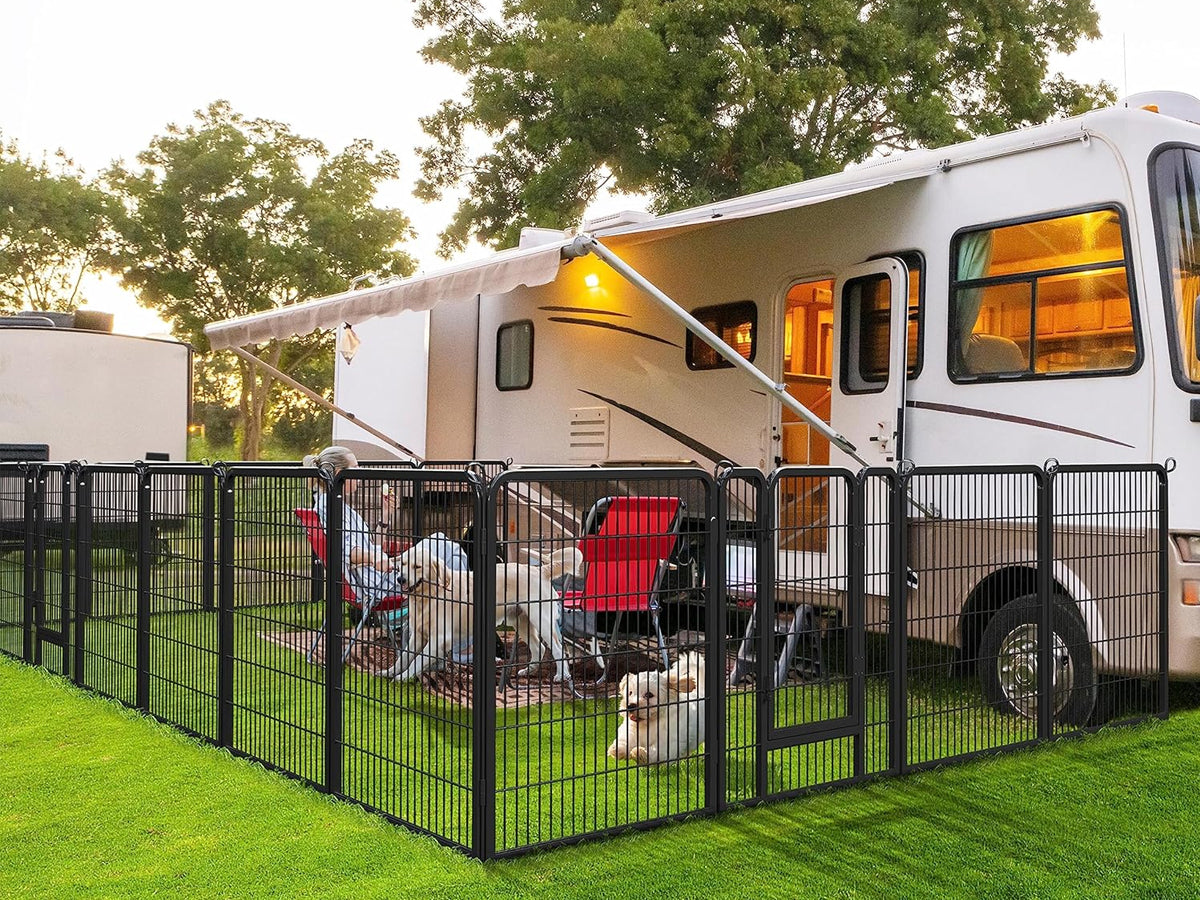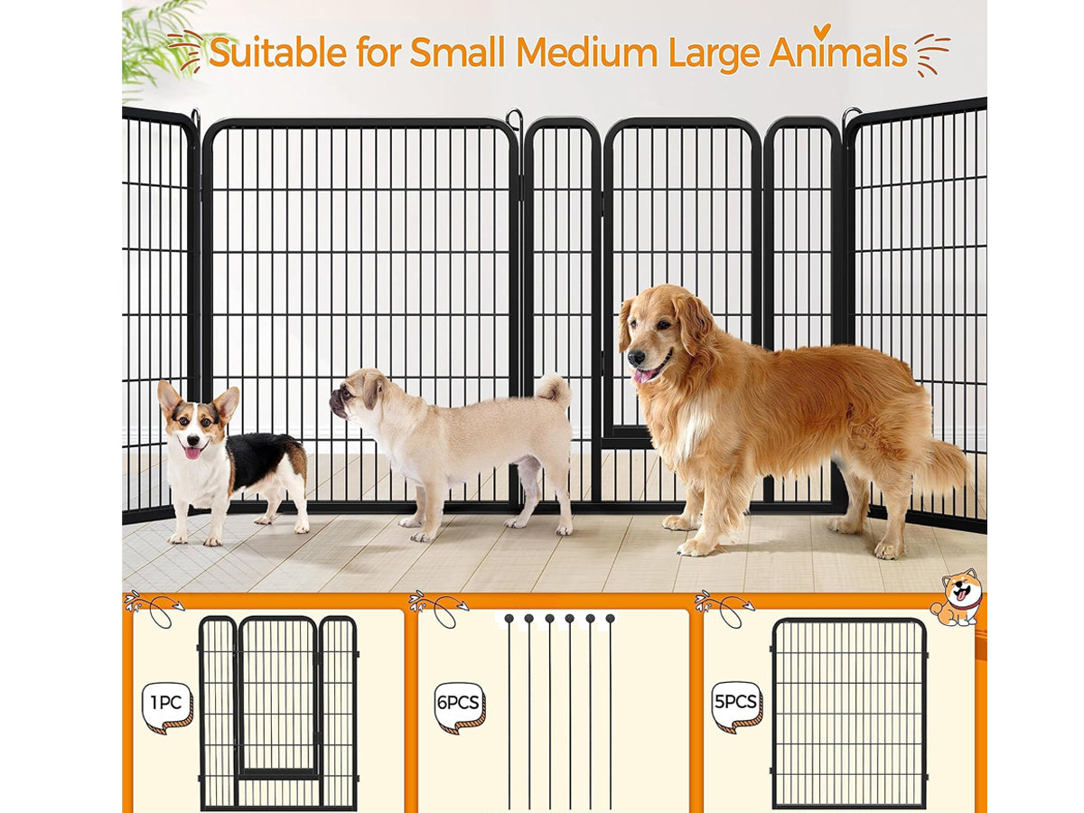 This Dog Play Pen Metal Fence is ideal for creating a safe, versatile space for pets indoors or outdoors, ensuring their security.